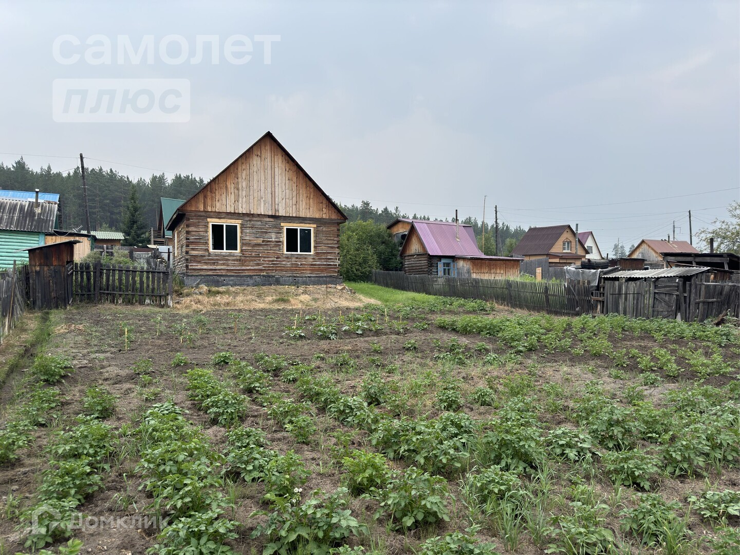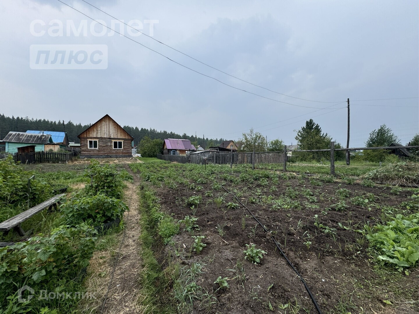 -На участке имеются насаждения: малина, жимолость, вишня, слива, смородина, ирга, облепиха, шиповник, крыжовник, яблонька, сирень, черемуха)