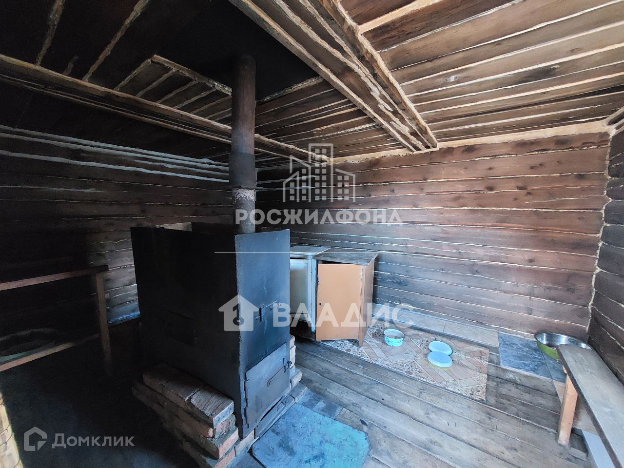 На участке расположена постройка с печью из металла, которую можно использовать как зимовье, баню.