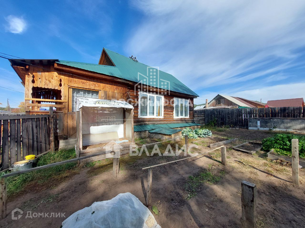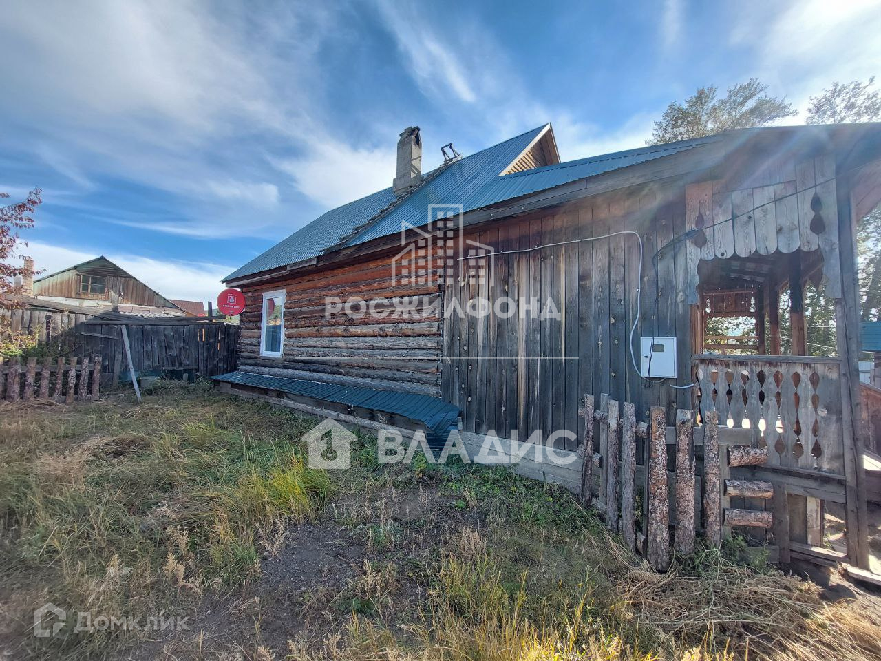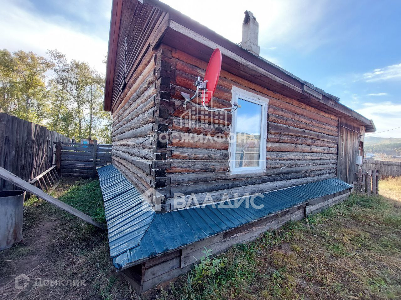 Стены дома бревенчатые. Крыша металлическая.