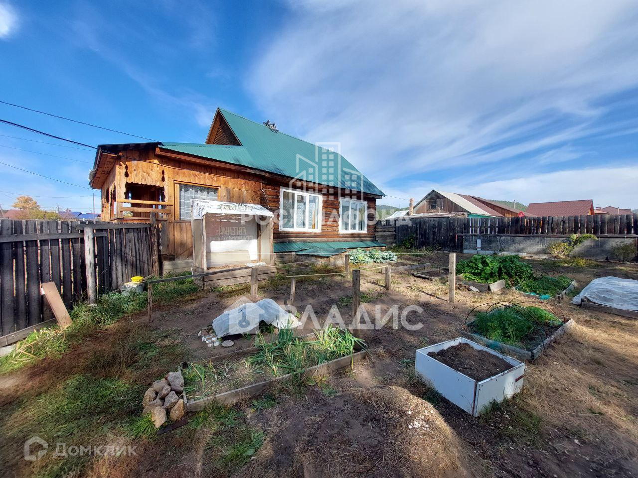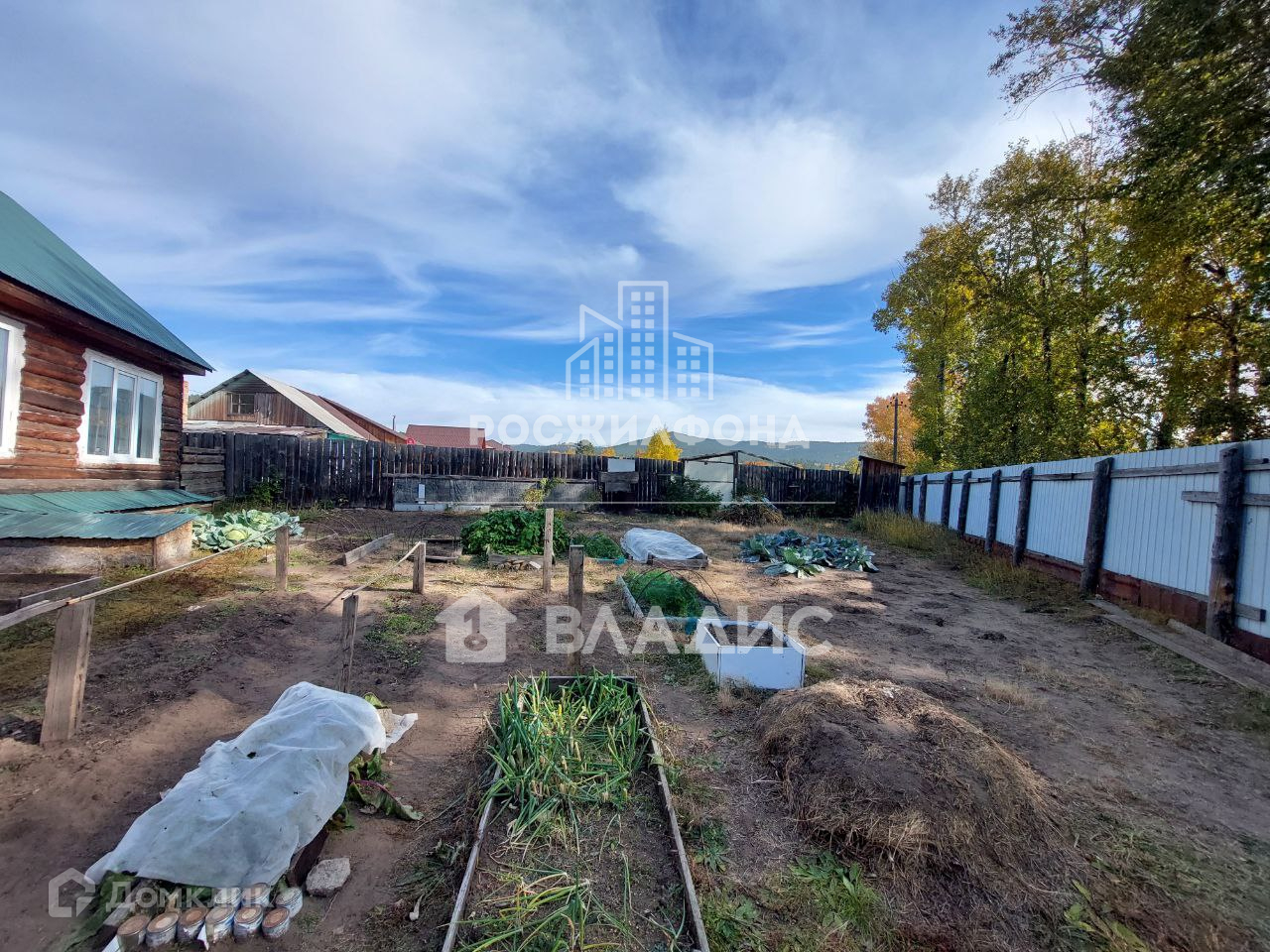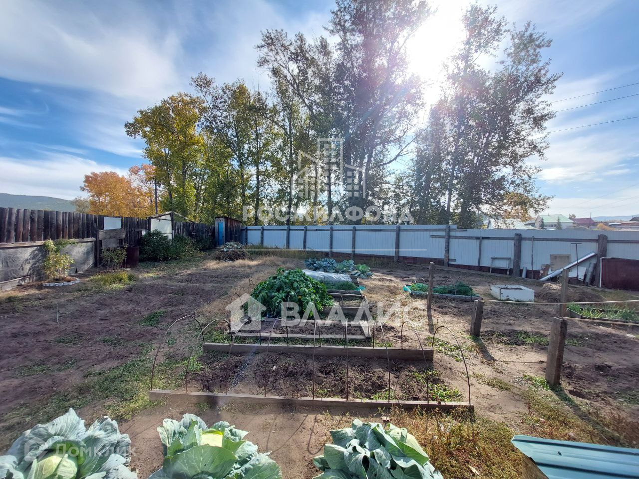 Участок ровный. Есть огород с грядками.