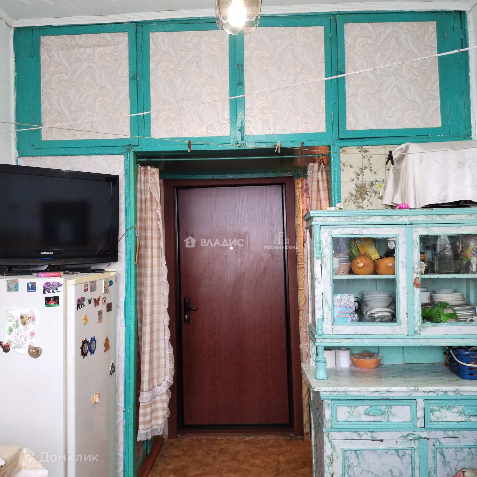 Ремонт косметический: окна одно пластиковое, другое деревянное, батарея чугунная, входная дверь новая металлическая, потолочная плитка, полы деревянные, на стенах обои. Есть вытяжка и раковина (трубы заведены).