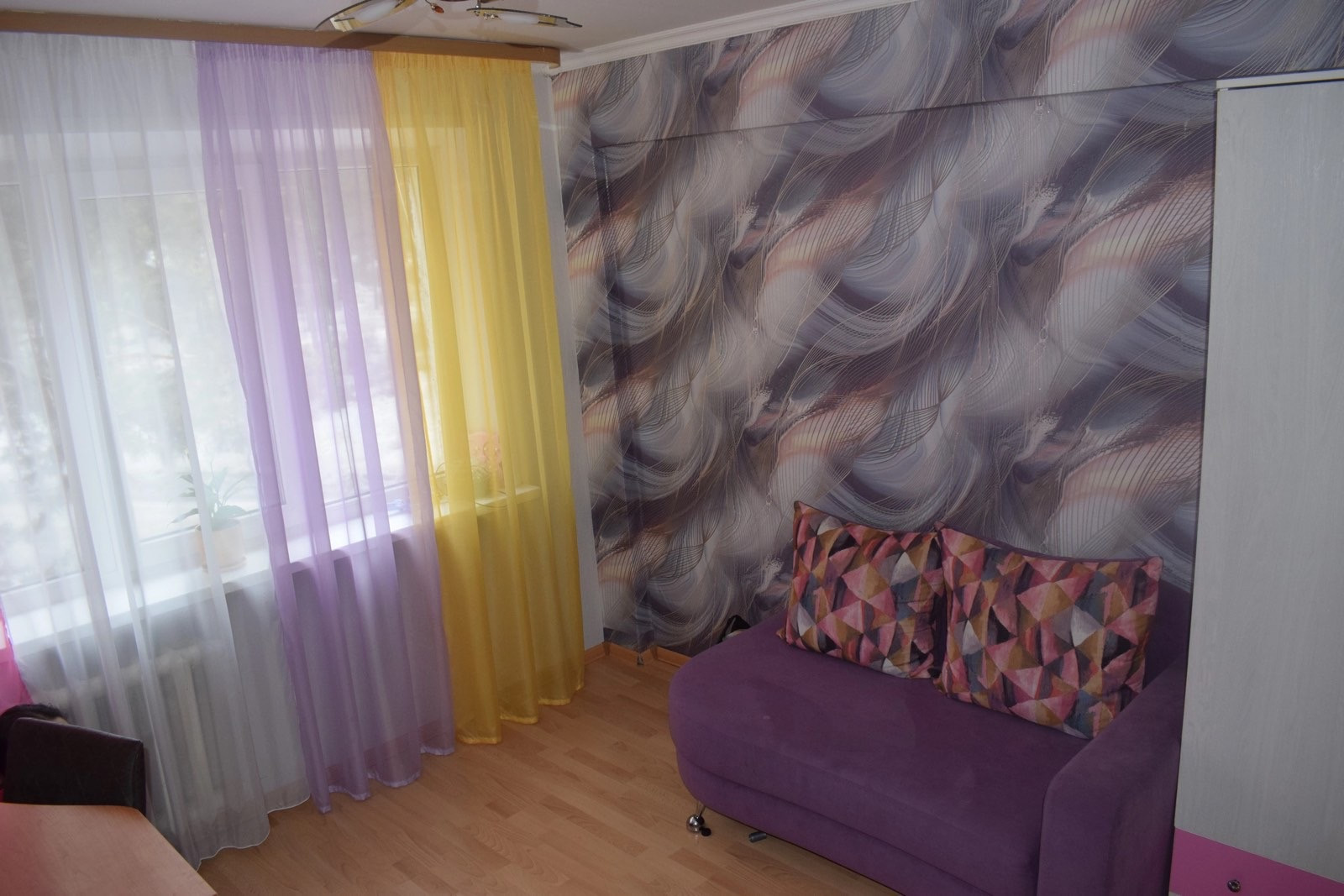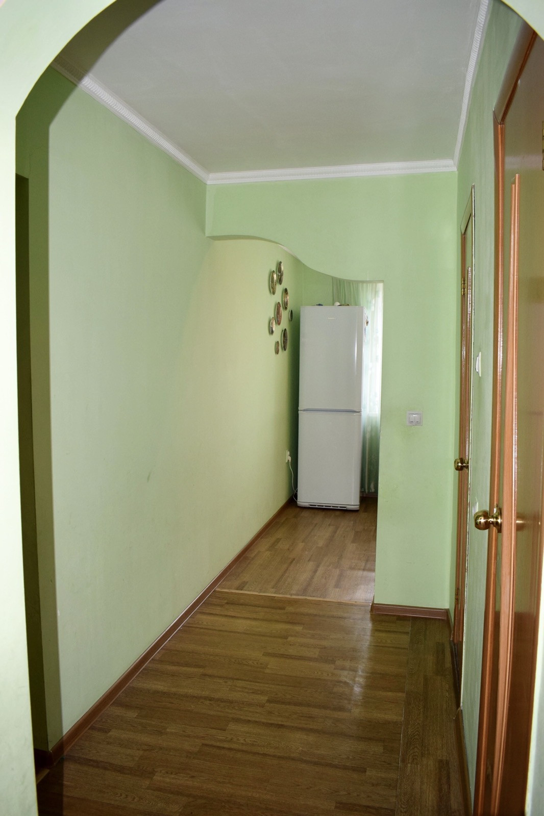 Окна пластиковые, полы линолеум, стены и потолок выровнены,  межкомнатные двери, санузел раздельный. Кухонный гарнитур и мебель в коридоре остаются в квартире .