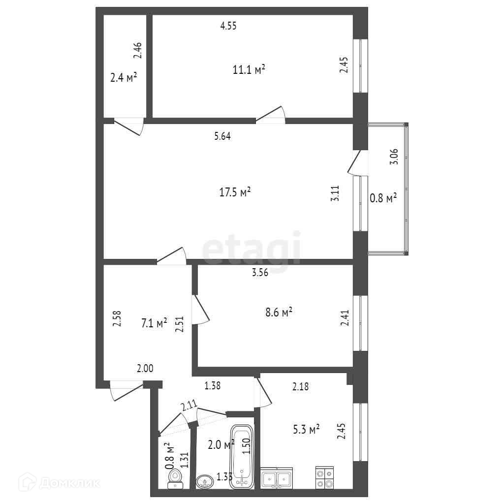 Общая площадь 56.4 м2