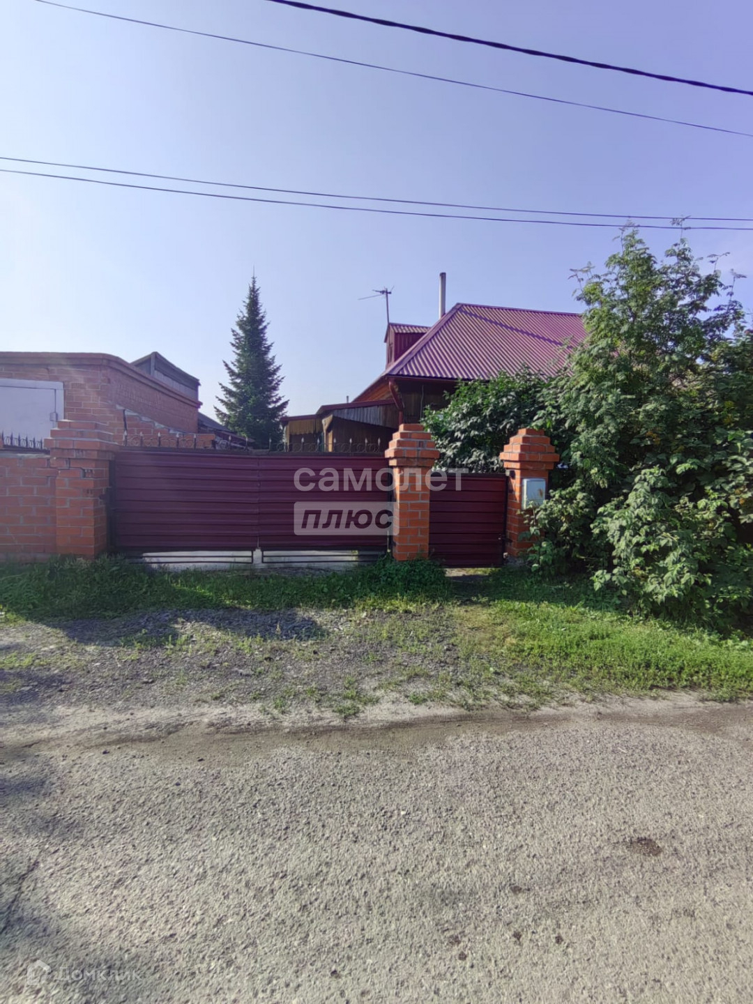 На участке много плодовых деревьев. Возле дома посажена сосна.