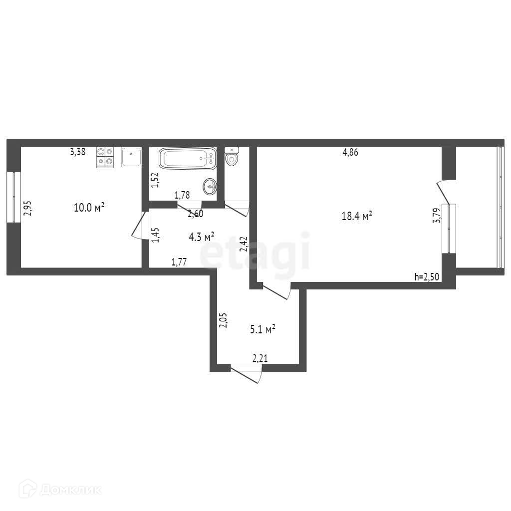 Общая площадь 41.5 м2