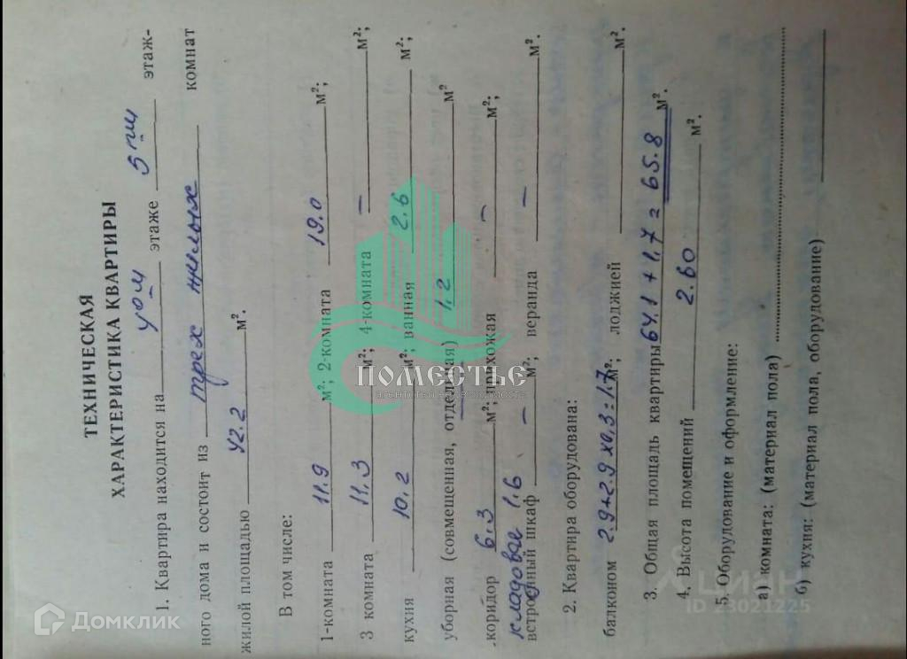 Жилая площадь 42.2 м2