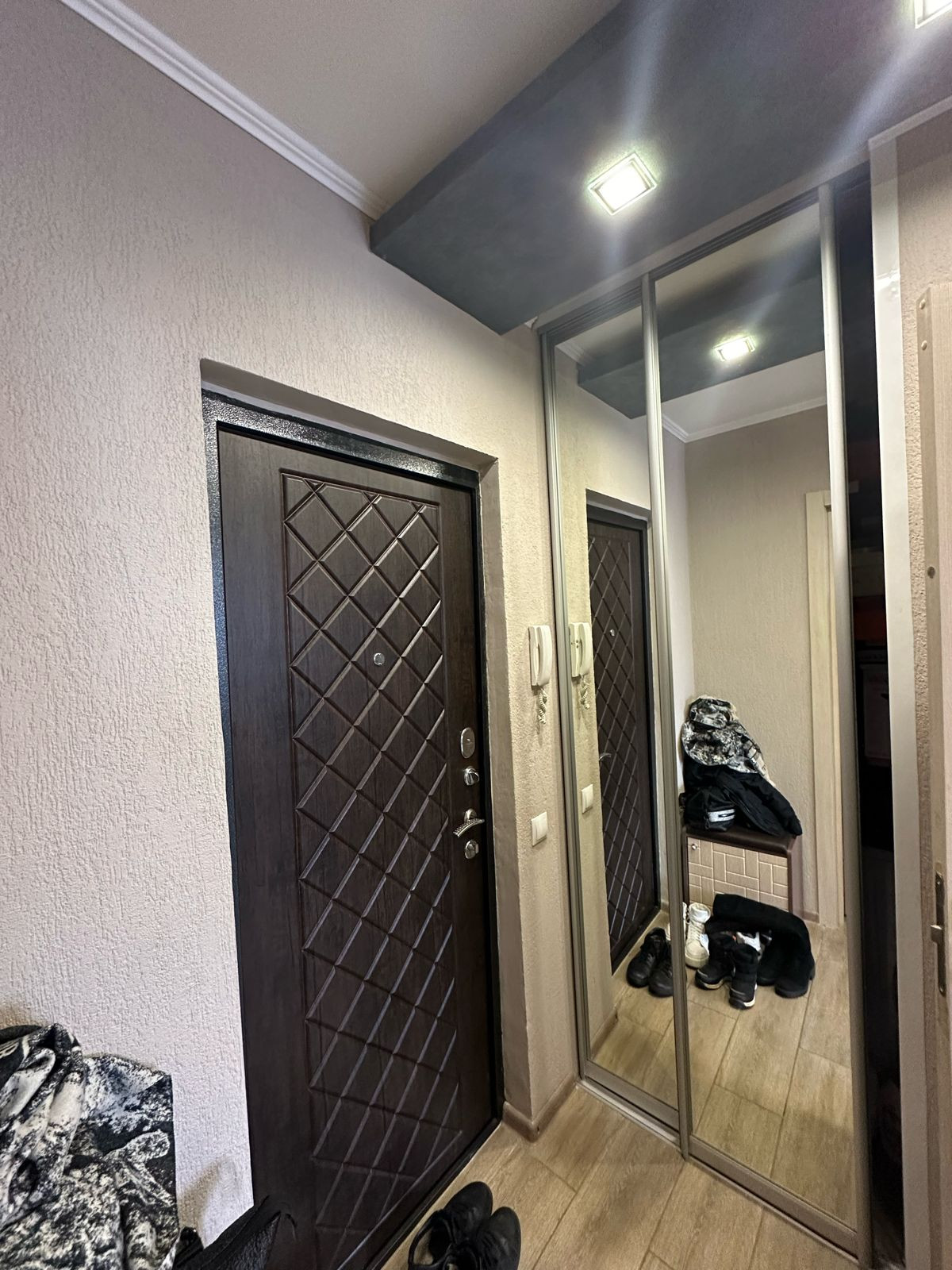 Продается уютная однокомнатная квартира улучшенной планировки. Квартира расположена на 3 этаже пятиэтажного дома. Общая площадь квартиры 33.9 кв.м., кухня 9 кв.м., комнаты 17 кв.м., имеется просторная лоджия( остеклена). Квартира полностью готова к проживанию, сделан  хороший ремонт: окна пвх, железная дверь , напольное покрытие плитка +ламинат, ванная комната-кафель, встроенная мебель, в квартире для удобного хранения вещей имеется  гардеробная. Дом, в котором расположена квартира, находится в районе с развитой инфраструктурой. В шаговой доступности школа, детской сад, сетевые магазины, автобусная остановка. Квартира в собственности более 5 лет, один взрослый собственник, полная сумма в договоре.