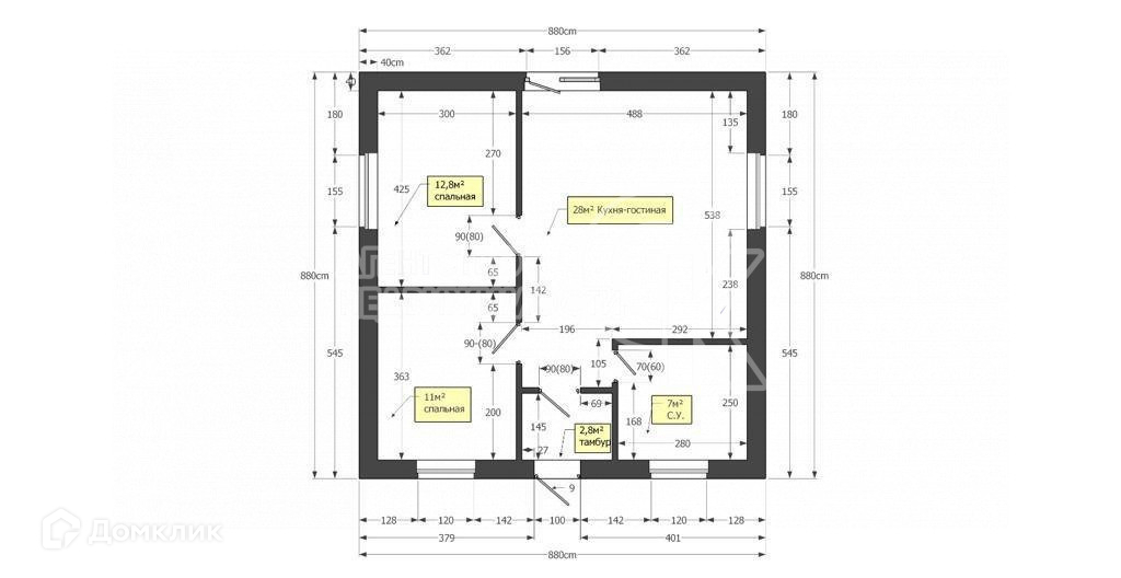 Общая площадь 65 м2