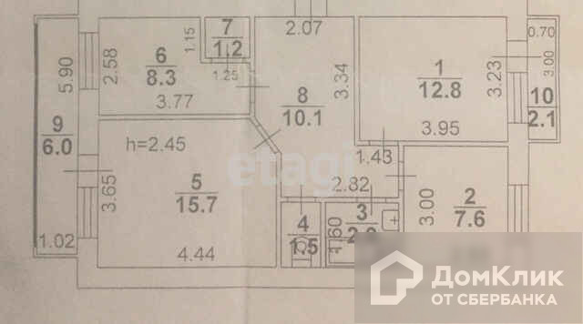 Общая площадь 60.1 м2