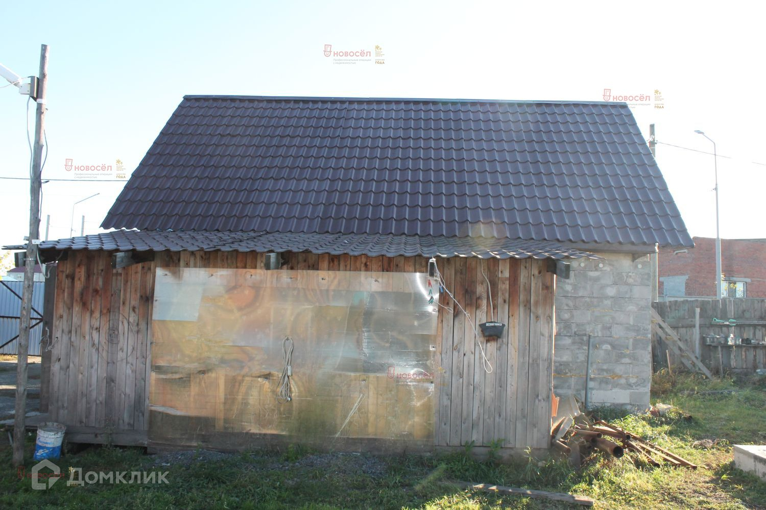 Баня отдельностоящая, крытое парковочное место в пределах участка, небольшой сарай, беседка, теплица из поликарбоната, место содержания крупного рогатого скота.