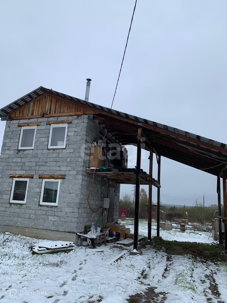 Большой навес для парковки авто, можно достроить гараж.
