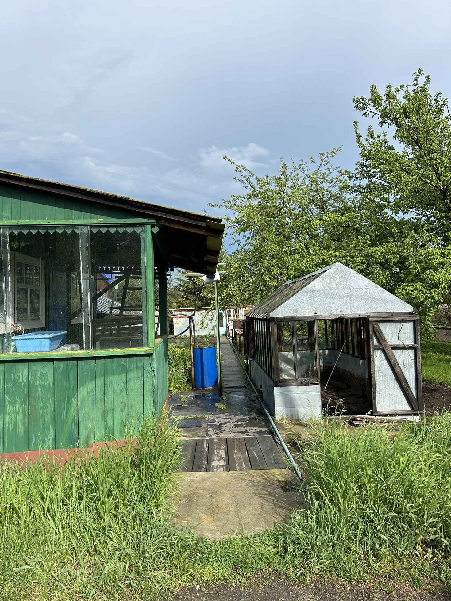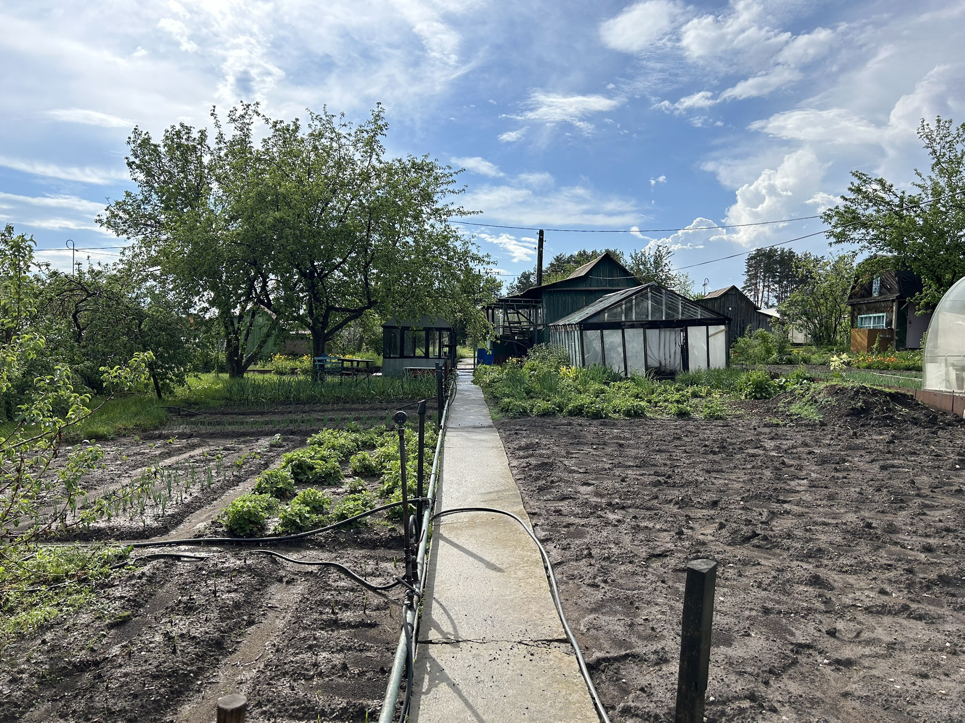 Удобное местоположение : можно добраться на автобусе из города. На участке 2 теплицы и сарай для хранения садового инвентаря.