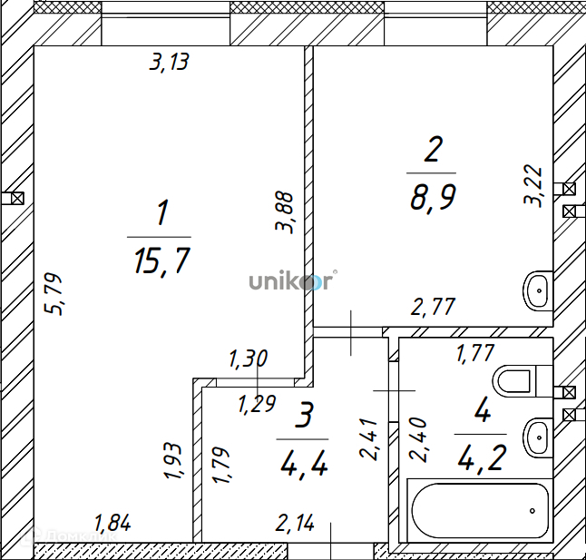 Жилая площадь 15.7 м2