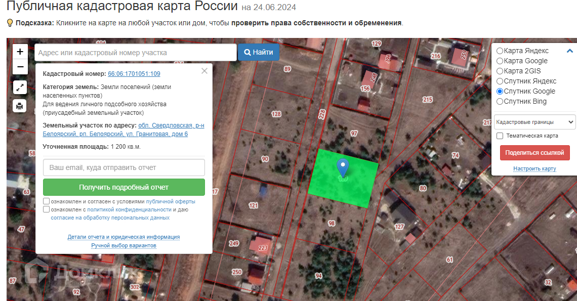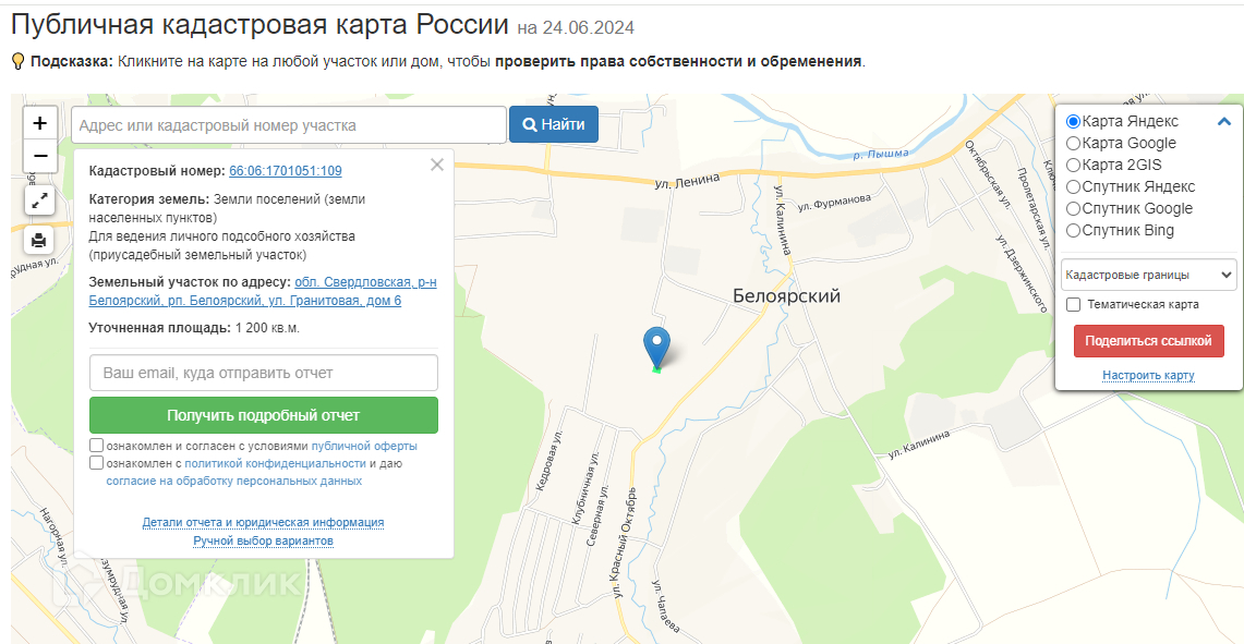Кадастровый номер участка: 66:06:1701051:109
