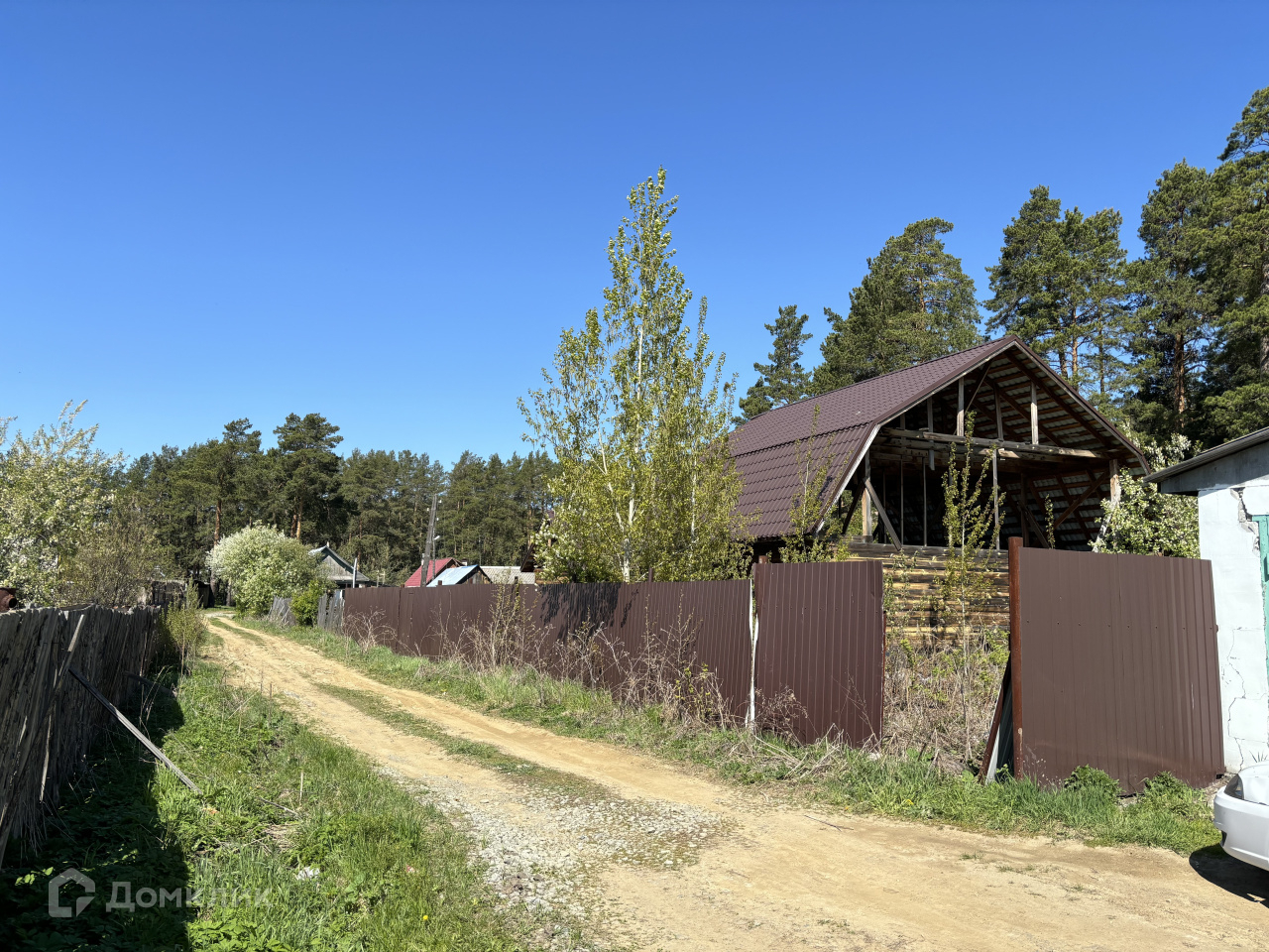 Участок огорожен забором из профнастила.