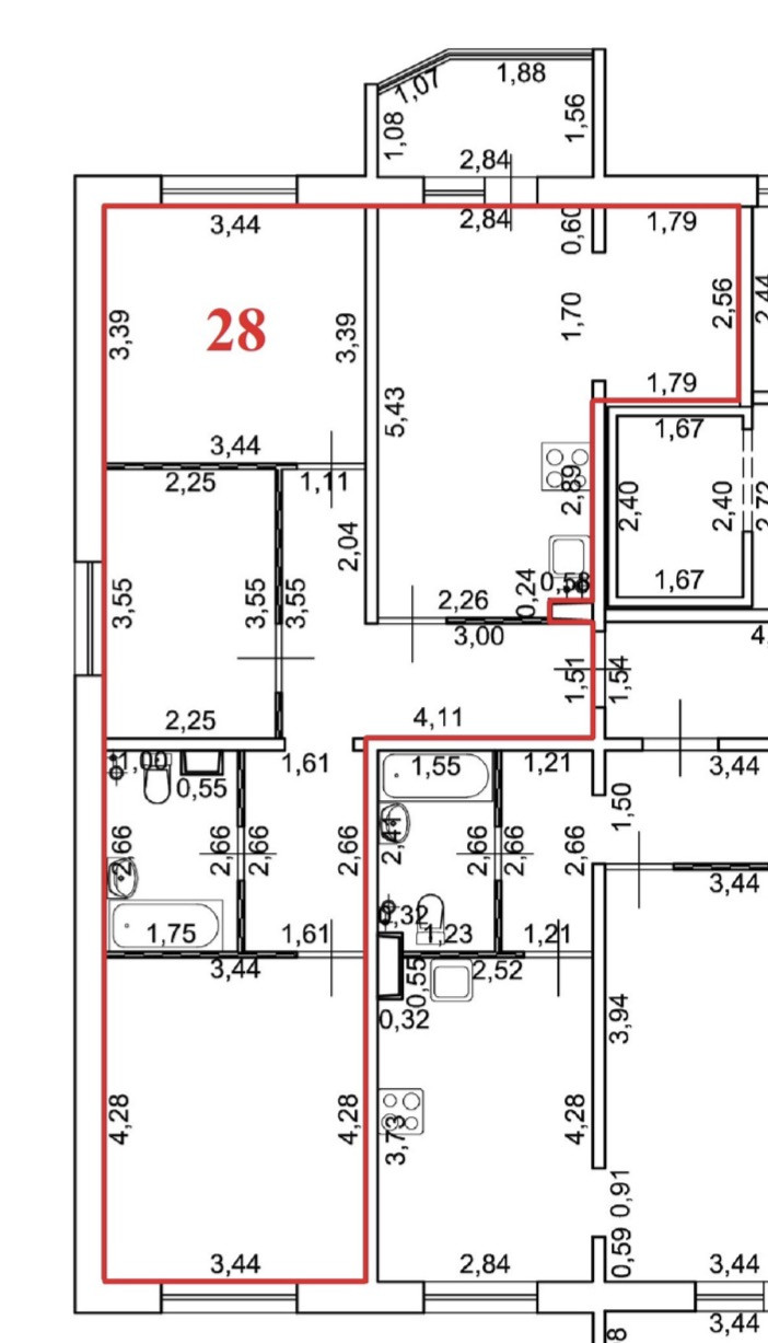 Высота потолков 2.84 м