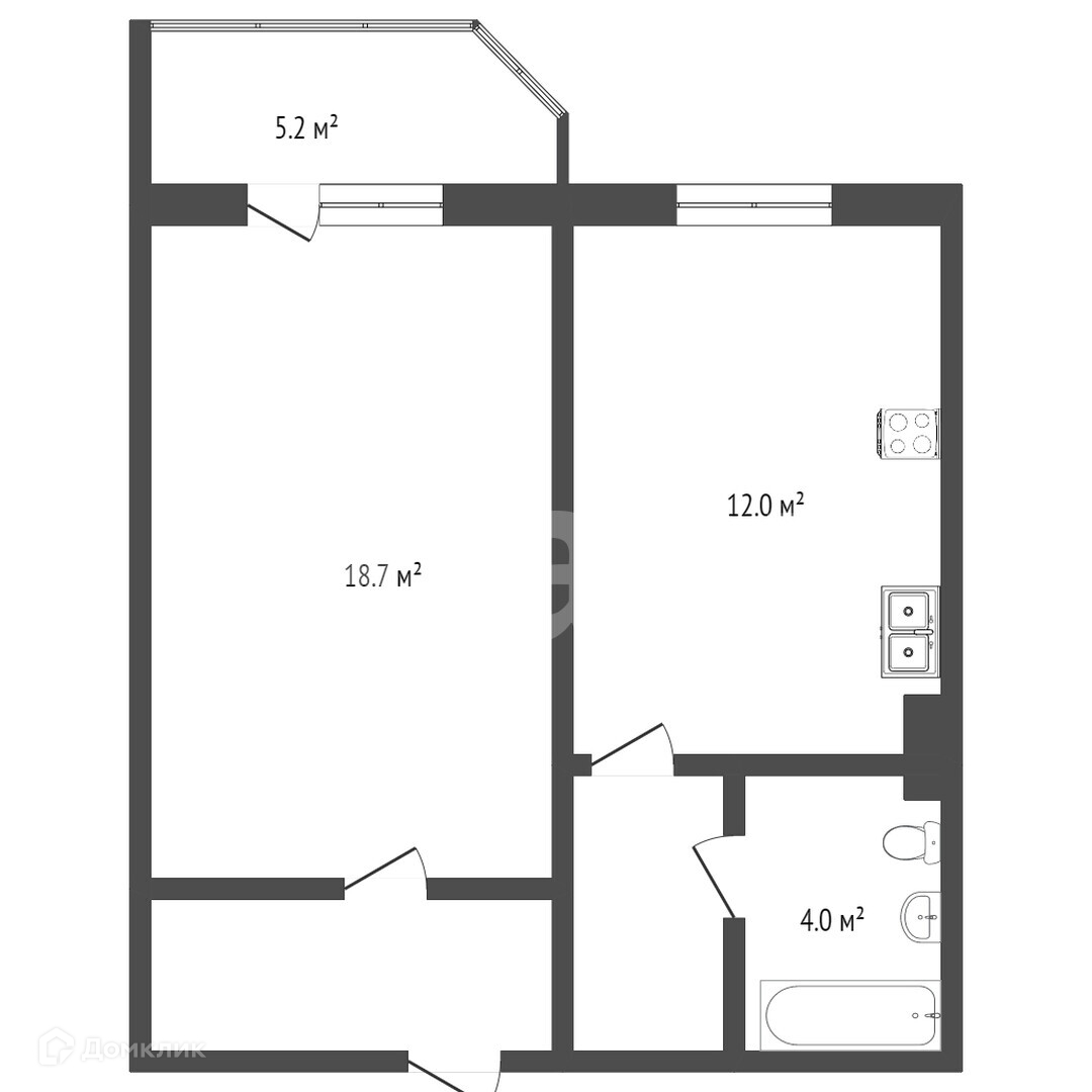 Общая площадь 43.2 м2