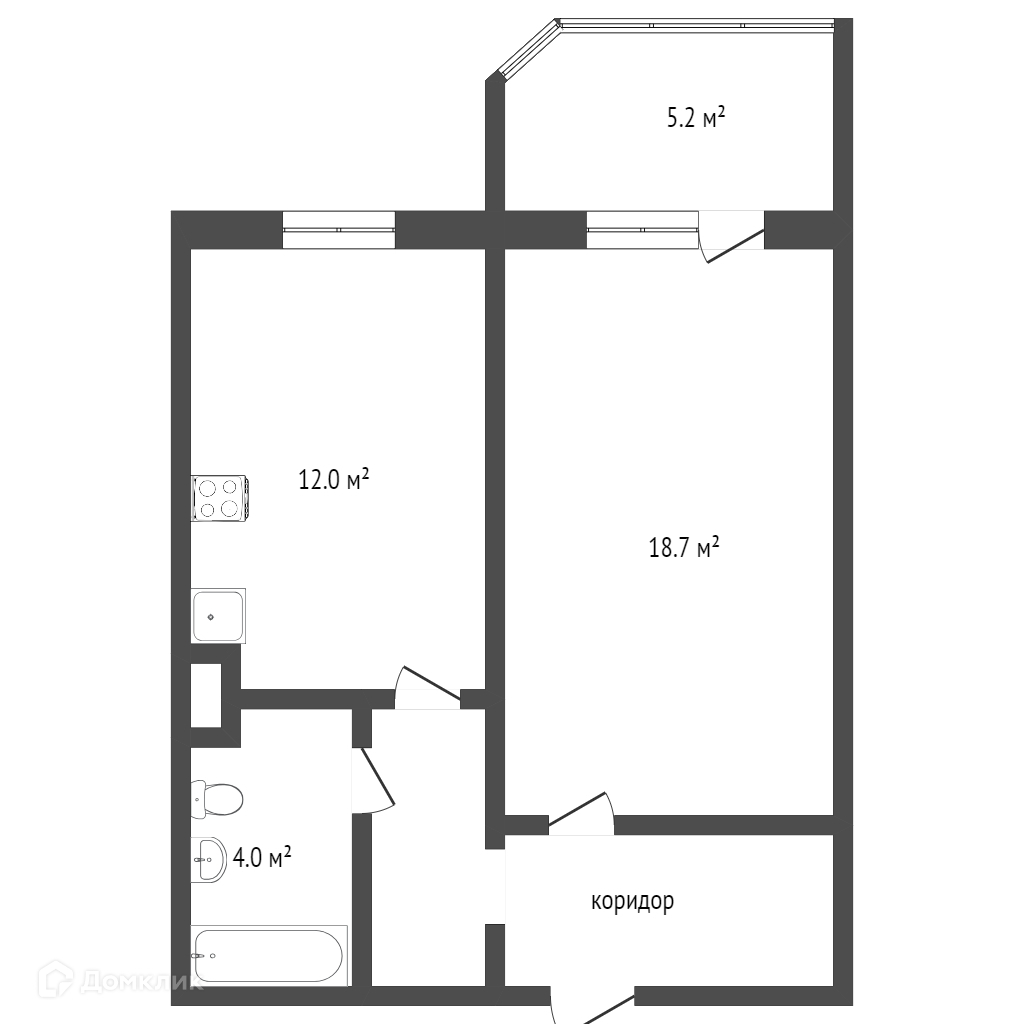 Общая площадь 43.2 м2