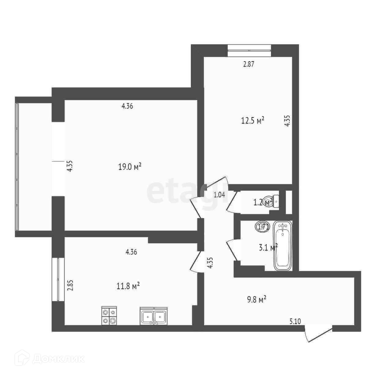 Общая площадь 54.8 м2