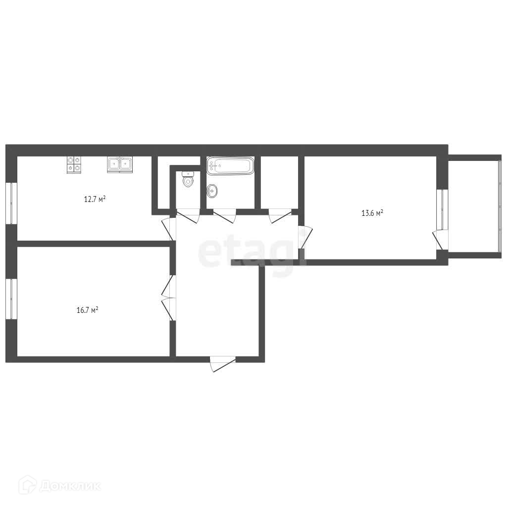 Общая площадь 55.6 м2