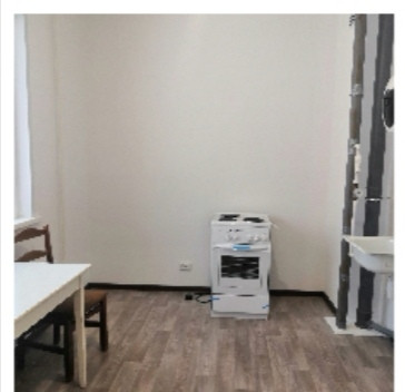 В квартире выполнен ремонт от застройщика. Без мебели, без балкона. На кухне имеются раковина, стол и стулья.
