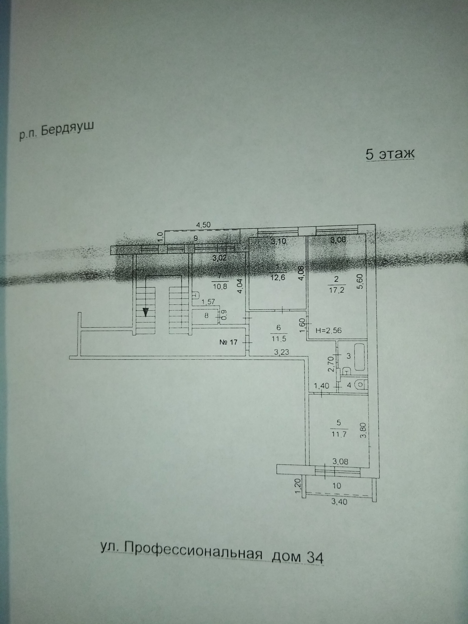 3-комнатная квартира, 68.5 м2, этаж 5 / 5, на продажу в посёлке городского типа Бердяуш, Профессиональная улица, 34