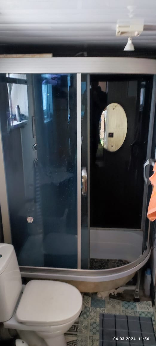 В доме остается - кухонный гарнитур, обеденная группа, кровать, встроенный шкаф, бойлер, душевая кабина, кондиционер (с функцией теплый-холодный воздух).