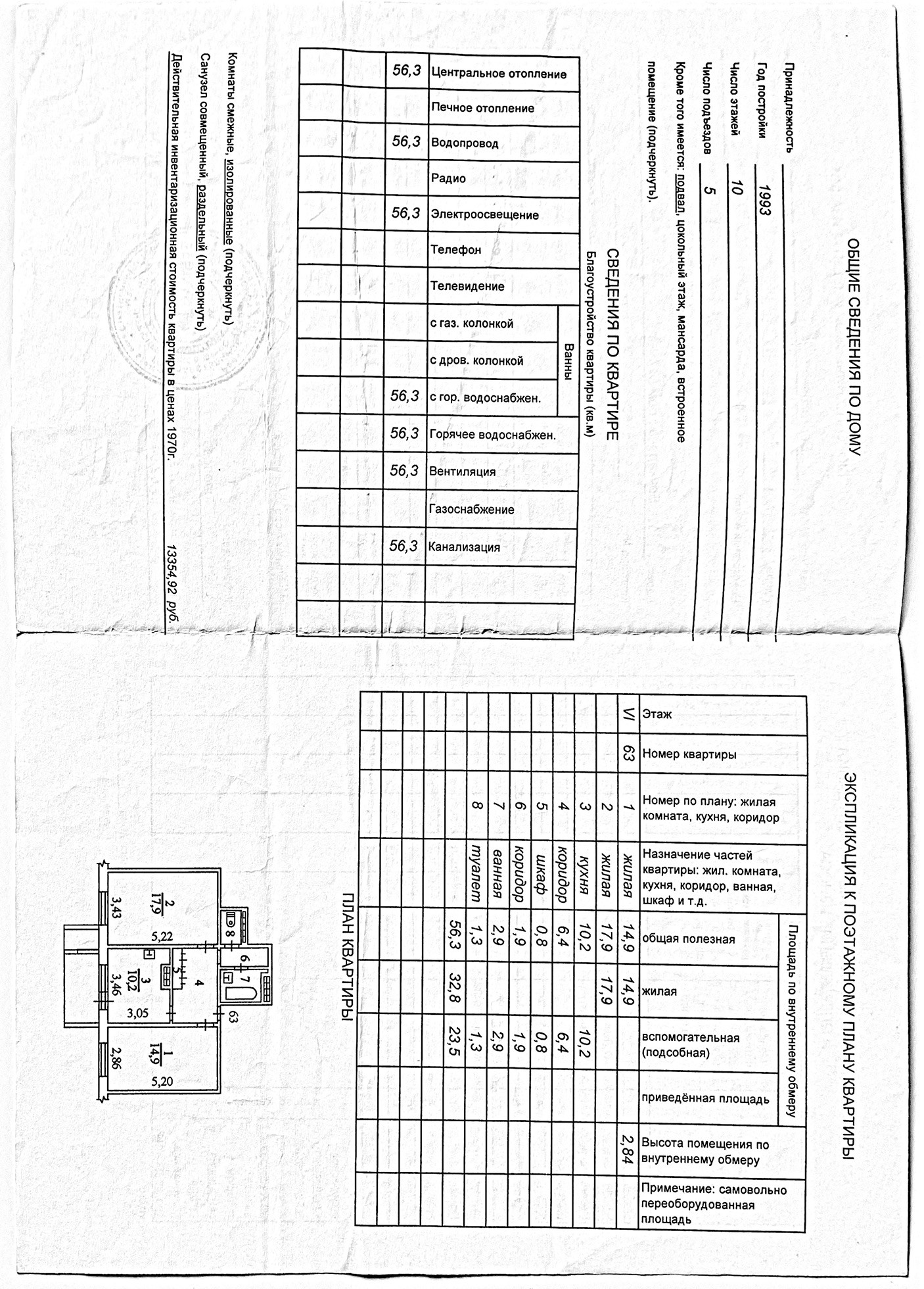 Общая площадь 56.3 м2