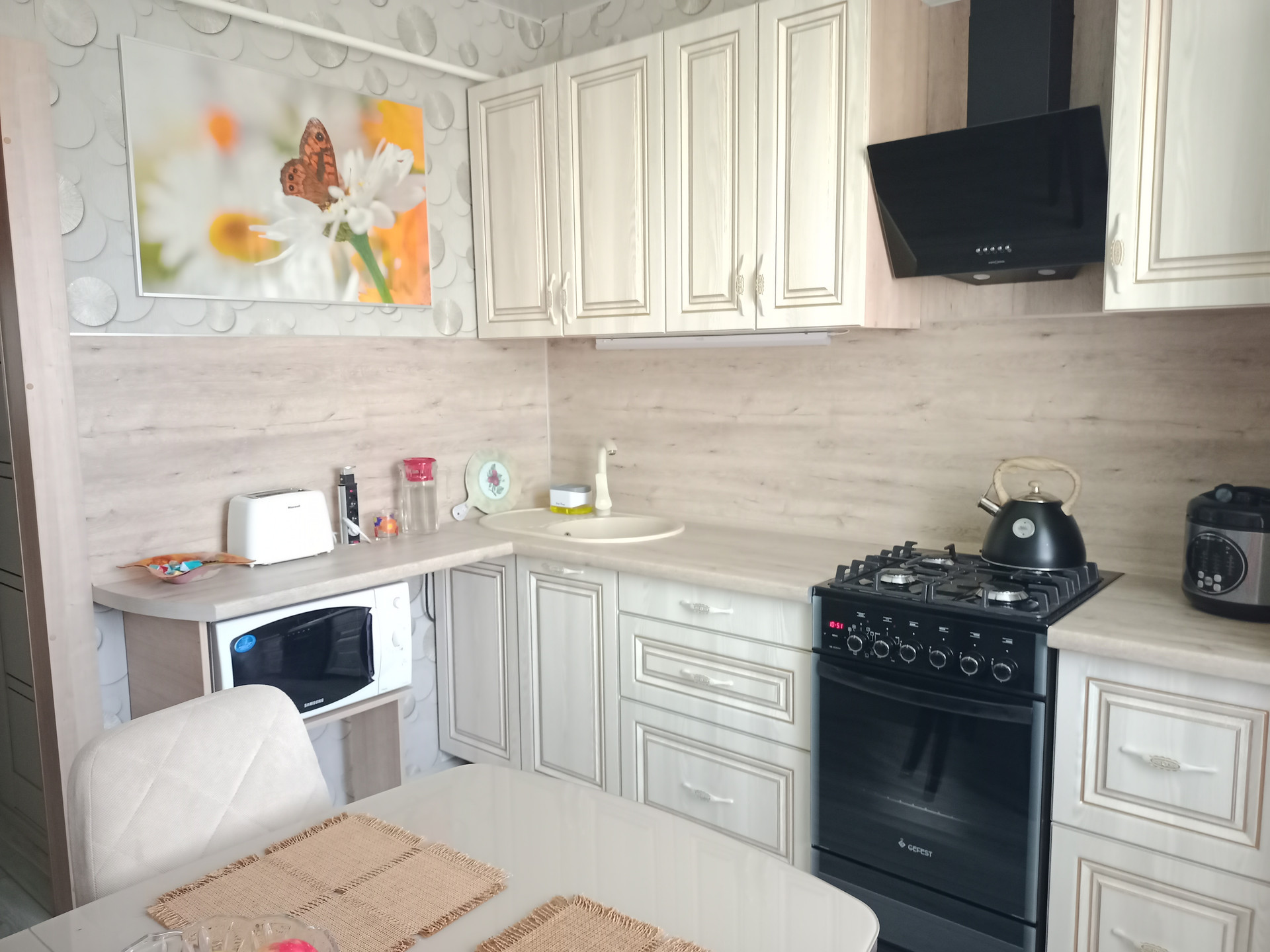 Остаются новым хозяевам: вся мебель и бытовая техника, гардины, шторы, светильники.