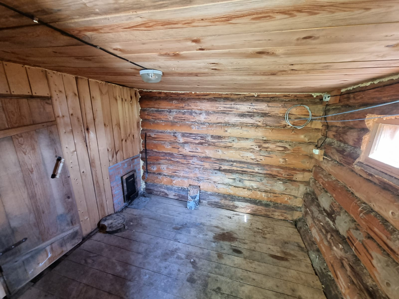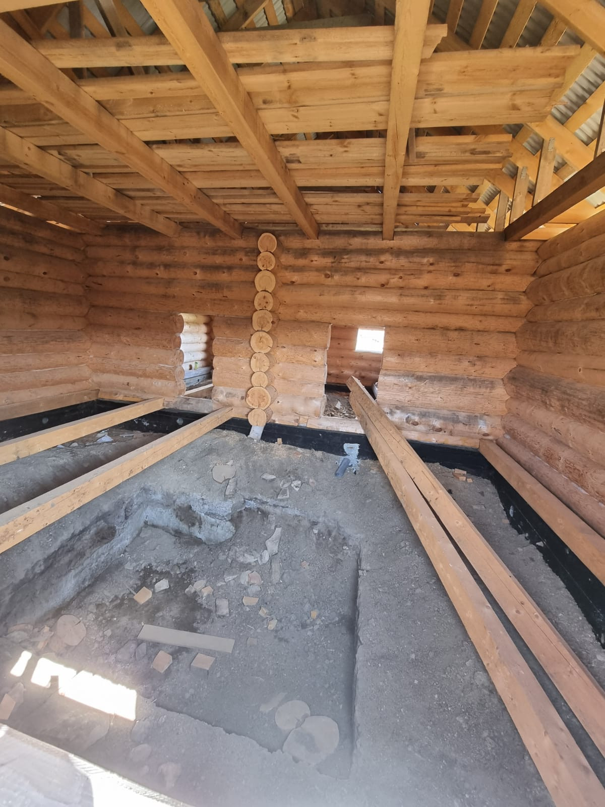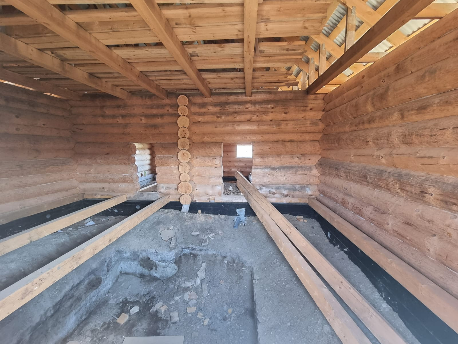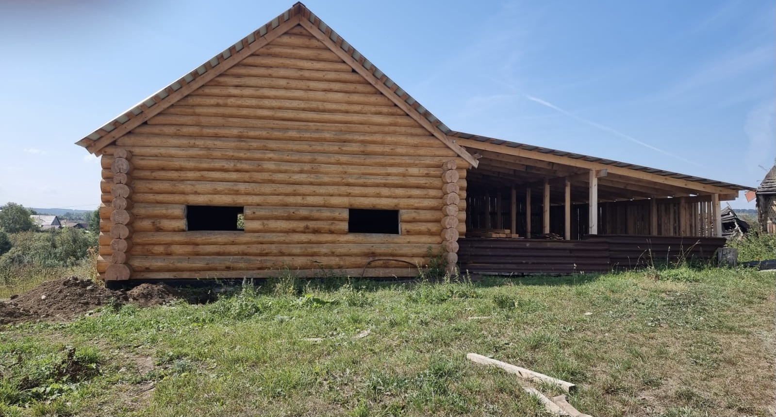 Устоявшийся сруб из рубленого бревна, диаметром от 40 до 60 см, размер сруба  9*12 метров, высотой около 11,5 м., снаружи обработан антисептиком, стоит на свайно-ленточном фундаменте, кровля из профлиста. В доме предусмотрено два  этажа, высота первого 3 м., площадь 95,7 кв.м., второй этаж-мансардный. Межкомнатные перегородки так же выполнены из бревен. Сруб готов для внутренней отделки.
