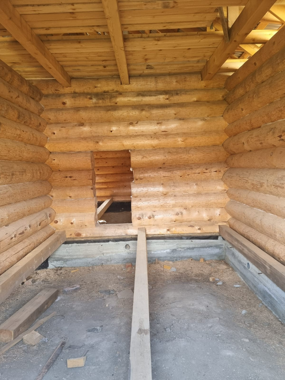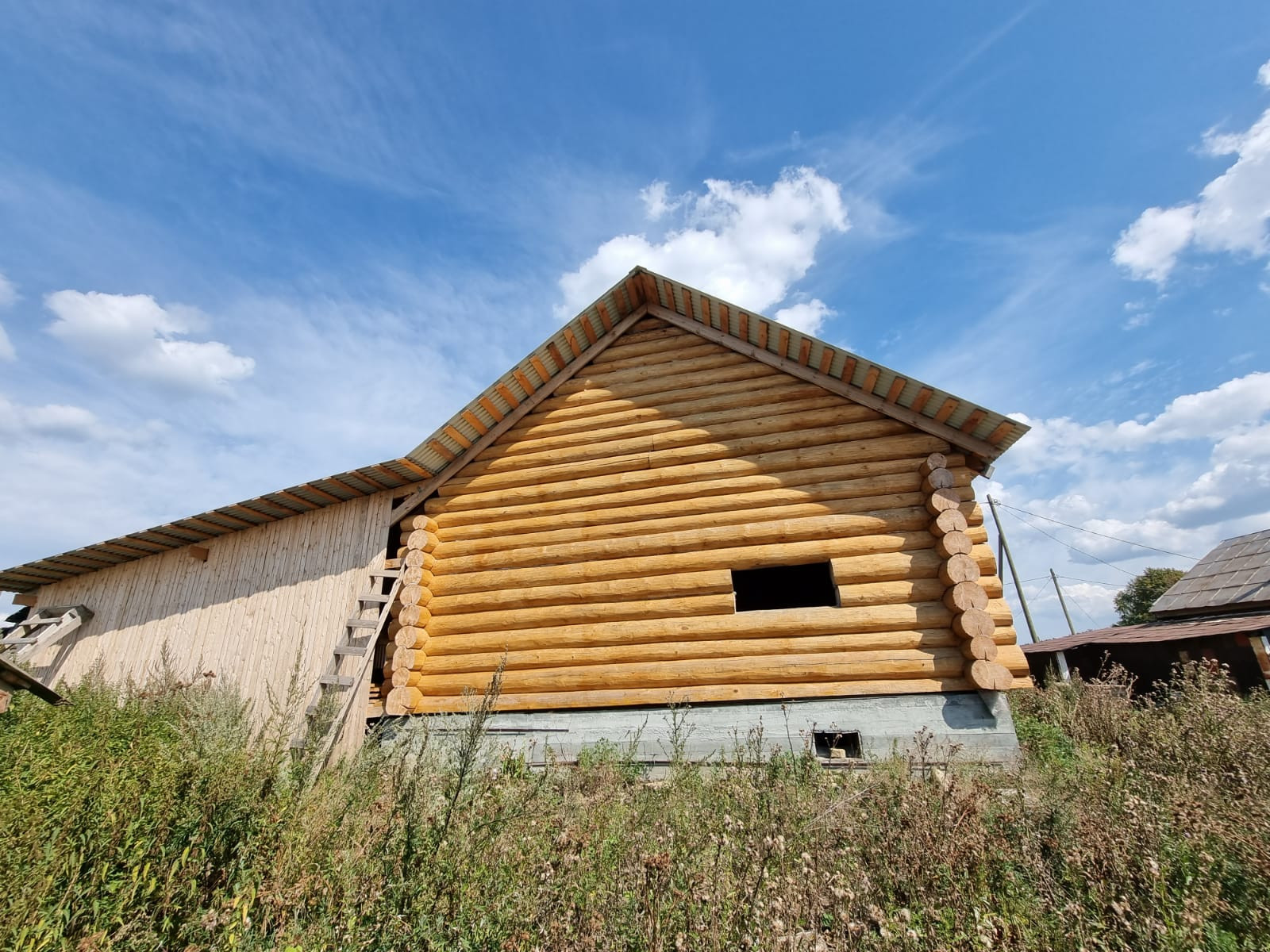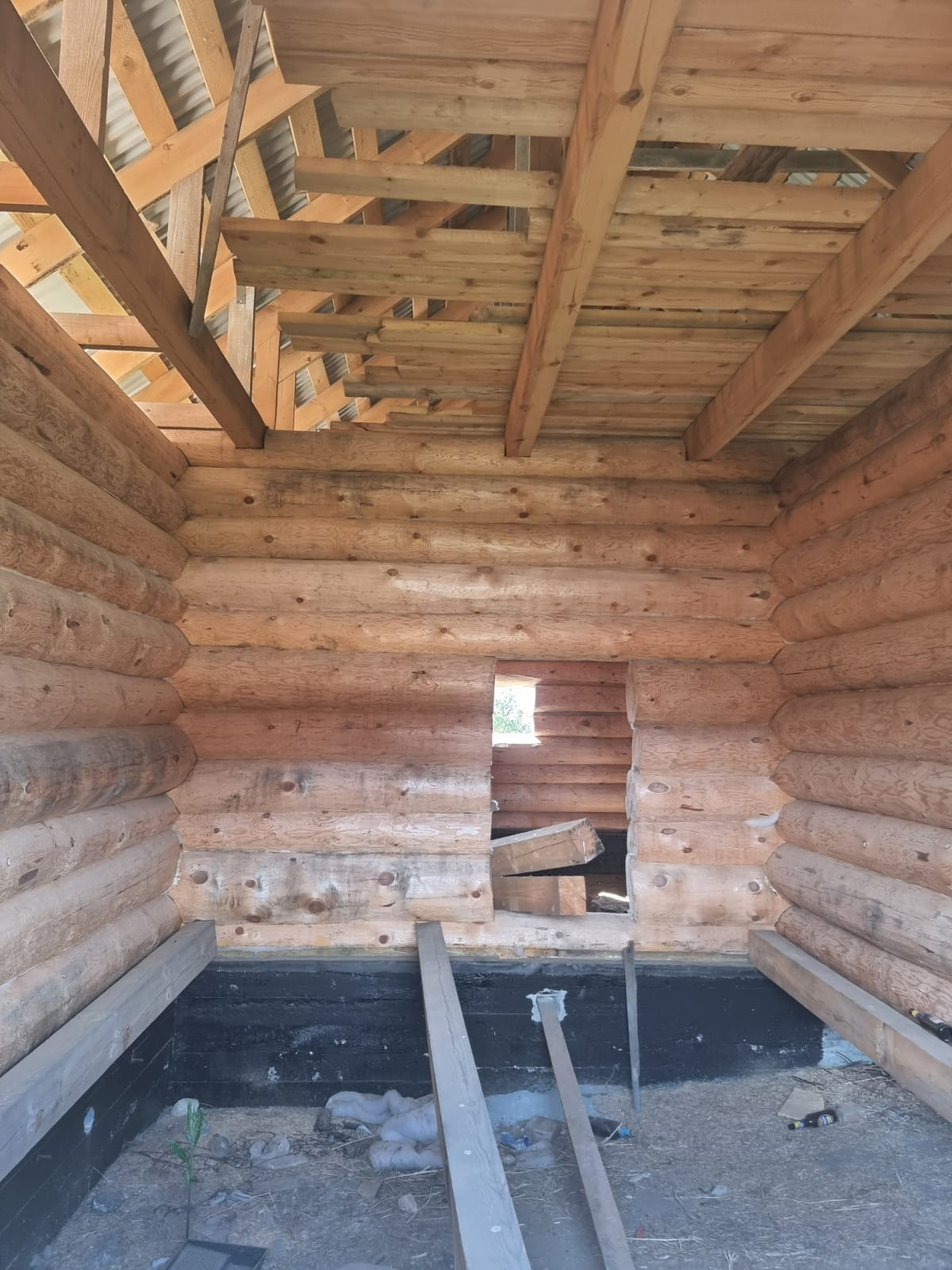 Устоявшийся сруб из рубленого бревна, диаметром от 40 до 60 см, размер сруба  9*12 метров, высотой около 11,5 м., снаружи обработан антисептиком, стоит на свайно-ленточном фундаменте, кровля из профлиста. В доме предусмотрено два  этажа, высота первого 3 м., площадь 95,7 кв.м., второй этаж-мансардный. Межкомнатные перегородки так же выполнены из бревен. Сруб готов для внутренней отделки.