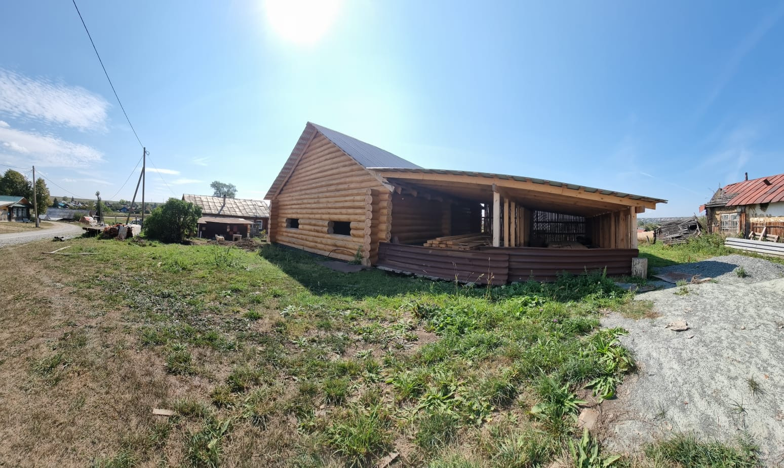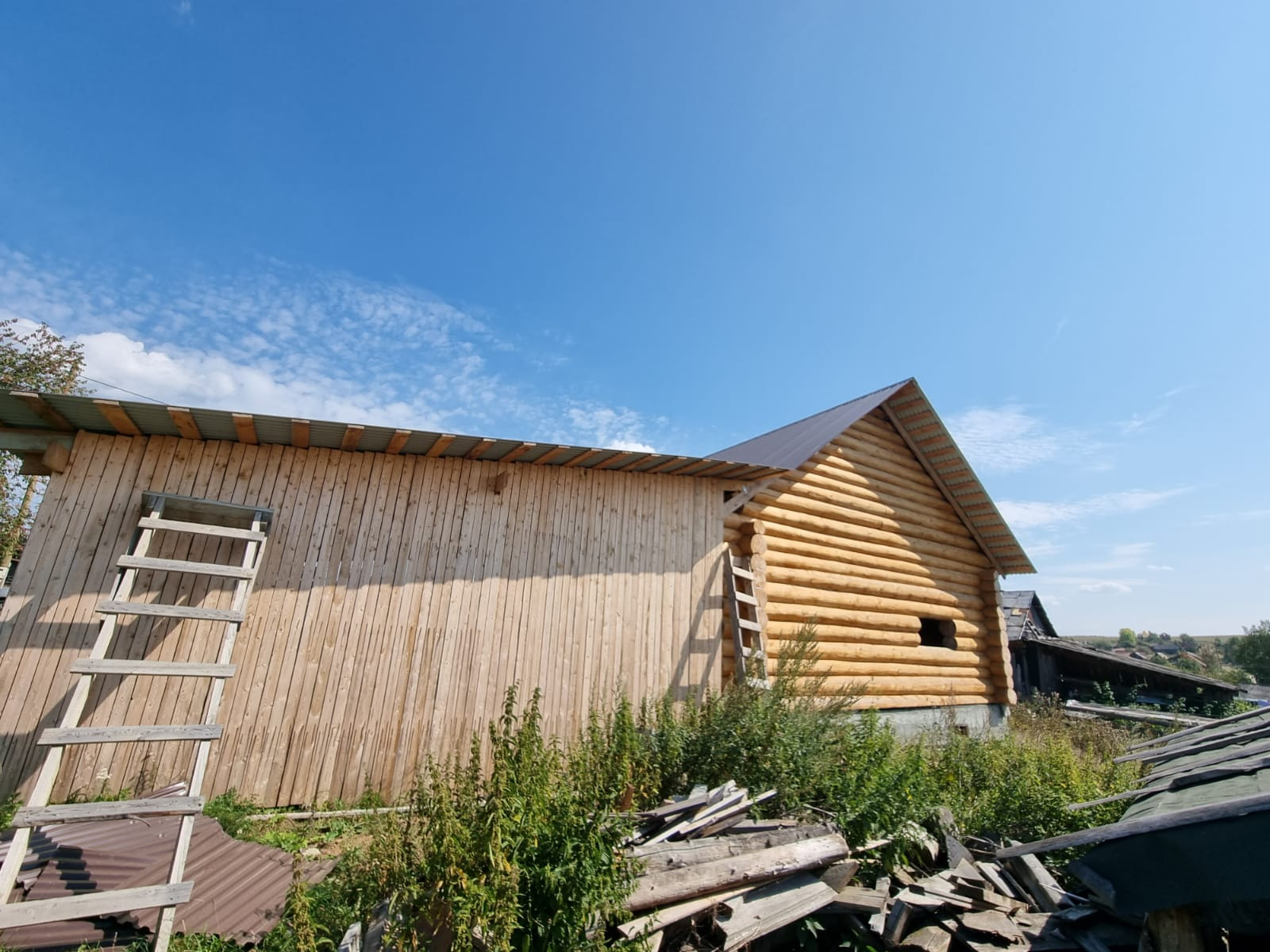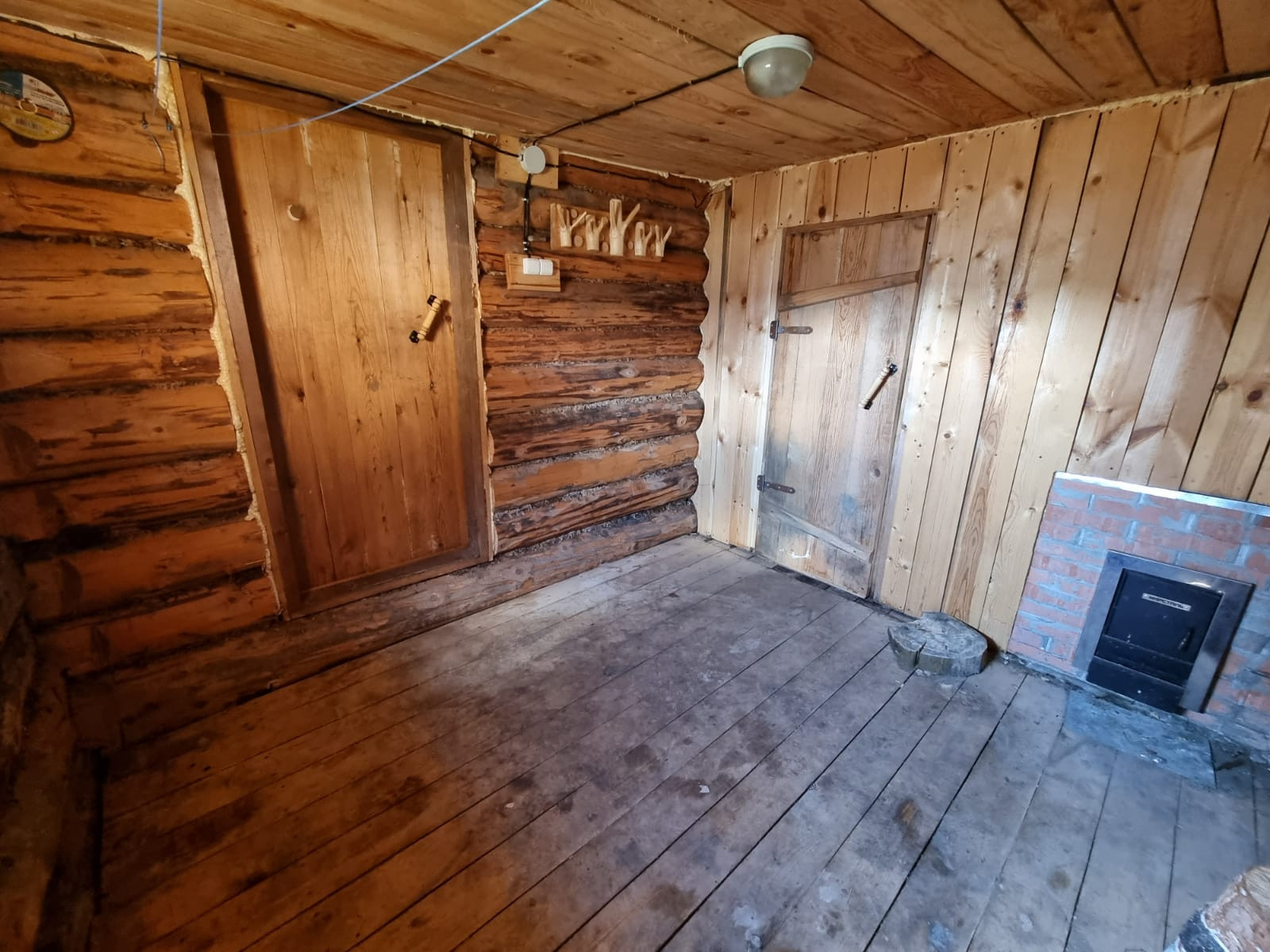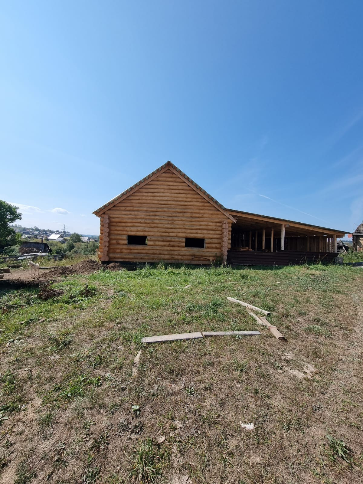 Устоявшийся сруб из рубленого бревна, диаметром от 40 до 60 см, размер сруба  9*12 метров, высотой около 11,5 м., снаружи обработан антисептиком, стоит на свайно-ленточном фундаменте, кровля из профлиста. В доме предусмотрено два  этажа, высота первого 3 м., площадь 95,7 кв.м., второй этаж-мансардный. Межкомнатные перегородки так же выполнены из бревен. Сруб готов для внутренней отделки.