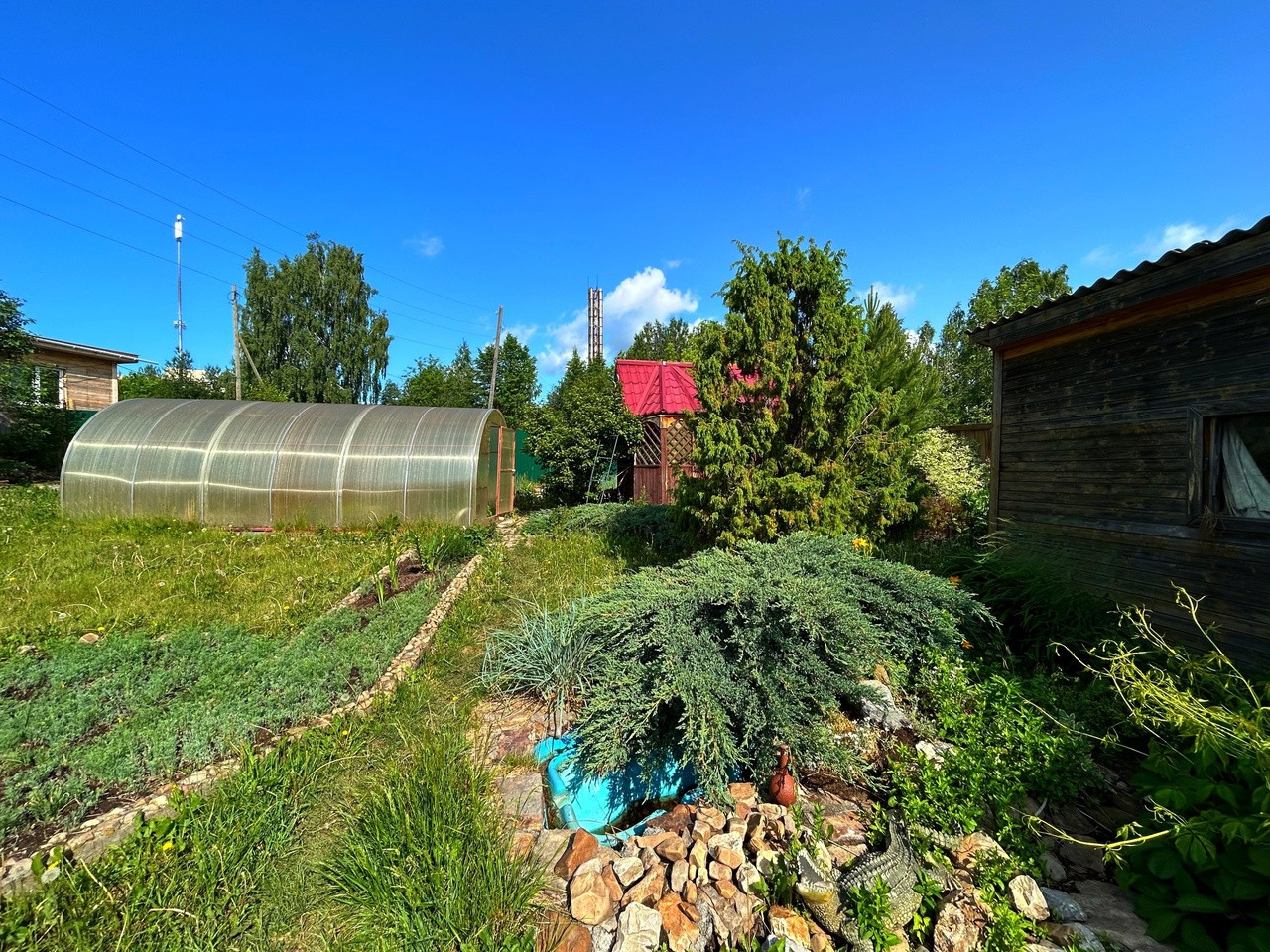 Участок 14 соток, разработан с любовью, посажены разные виды елей, елок, кустарников, имеются все насаждения, также есть 2 теплицы из поликарбоната, большая летняя веранда и беседка. Ну и конечно большой плюс это русская баня, с большим предбанником! Огромный, крытый двор, гараж (для 2-х и более машин).