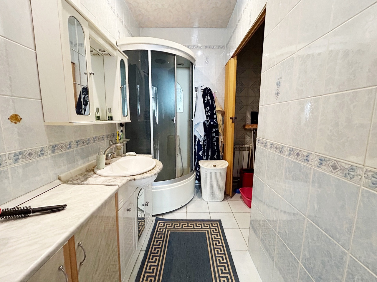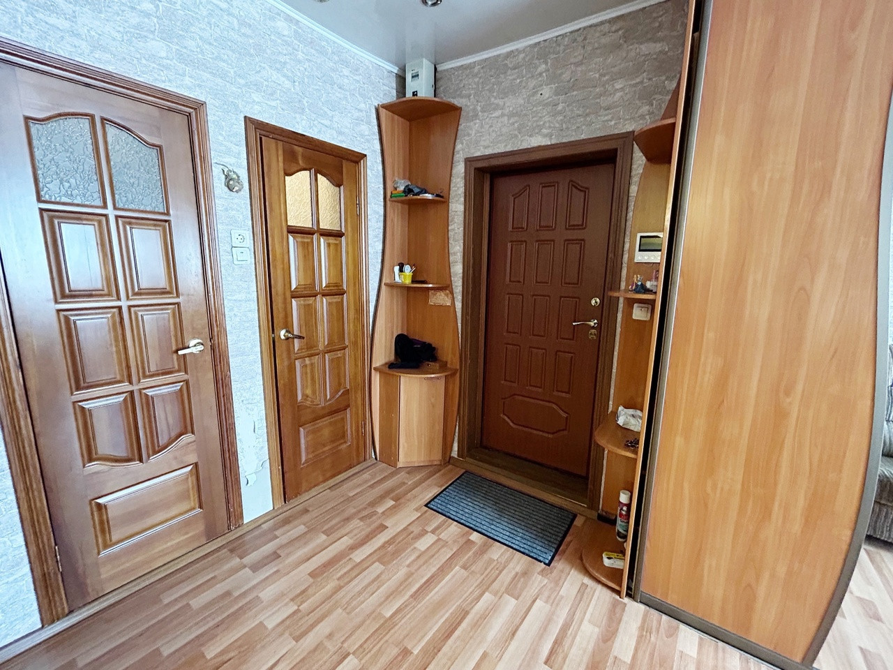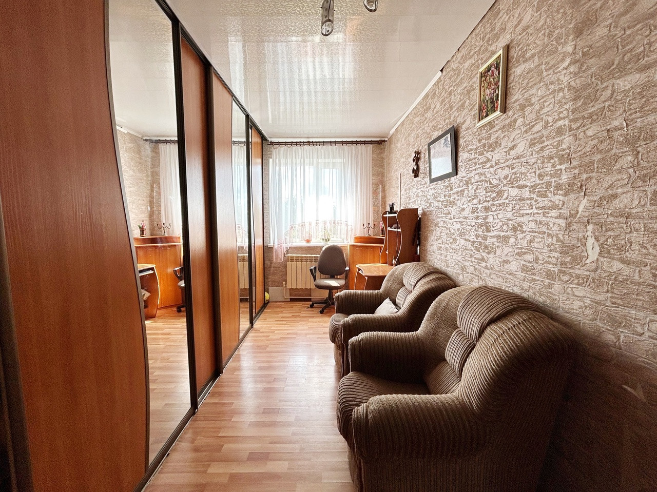 Дом в отличном состоянии, состоящий из 3-х просторных комнат, коридора, кухни, санузла, тамбура и кладовой. Внутренние стены дома деревянные, облицовка кирпичом, на крыше металлический профлист, также установлены пластиковые стеклопакеты, частично на полу уложен паркет, частично постелен линолеум, отопление газовое/электрическое, центральная канализация, санузел с душевой кабинкой в доме.