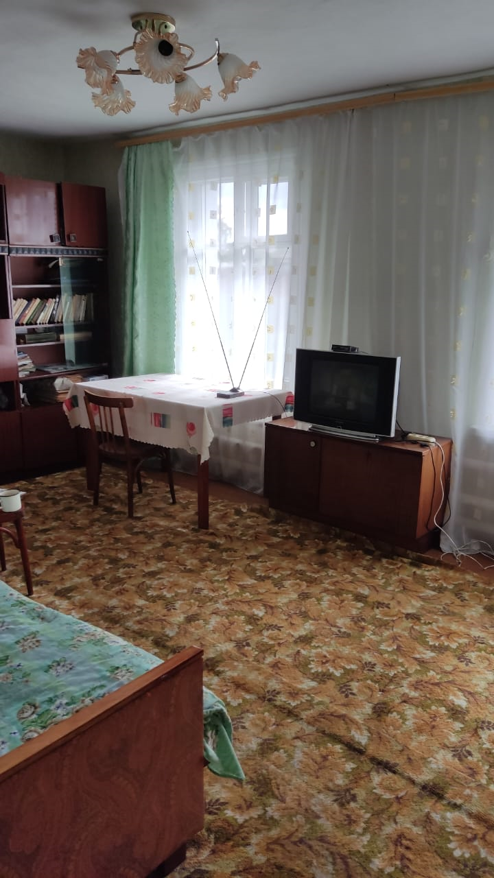 Продаётся дом на 2х/хоз (2 комн, кухня, большой холл), 46 м/кв, канализации в доме нет,  есть скважина, центральное отопление. Баня. Ул. Калинина (з/з).