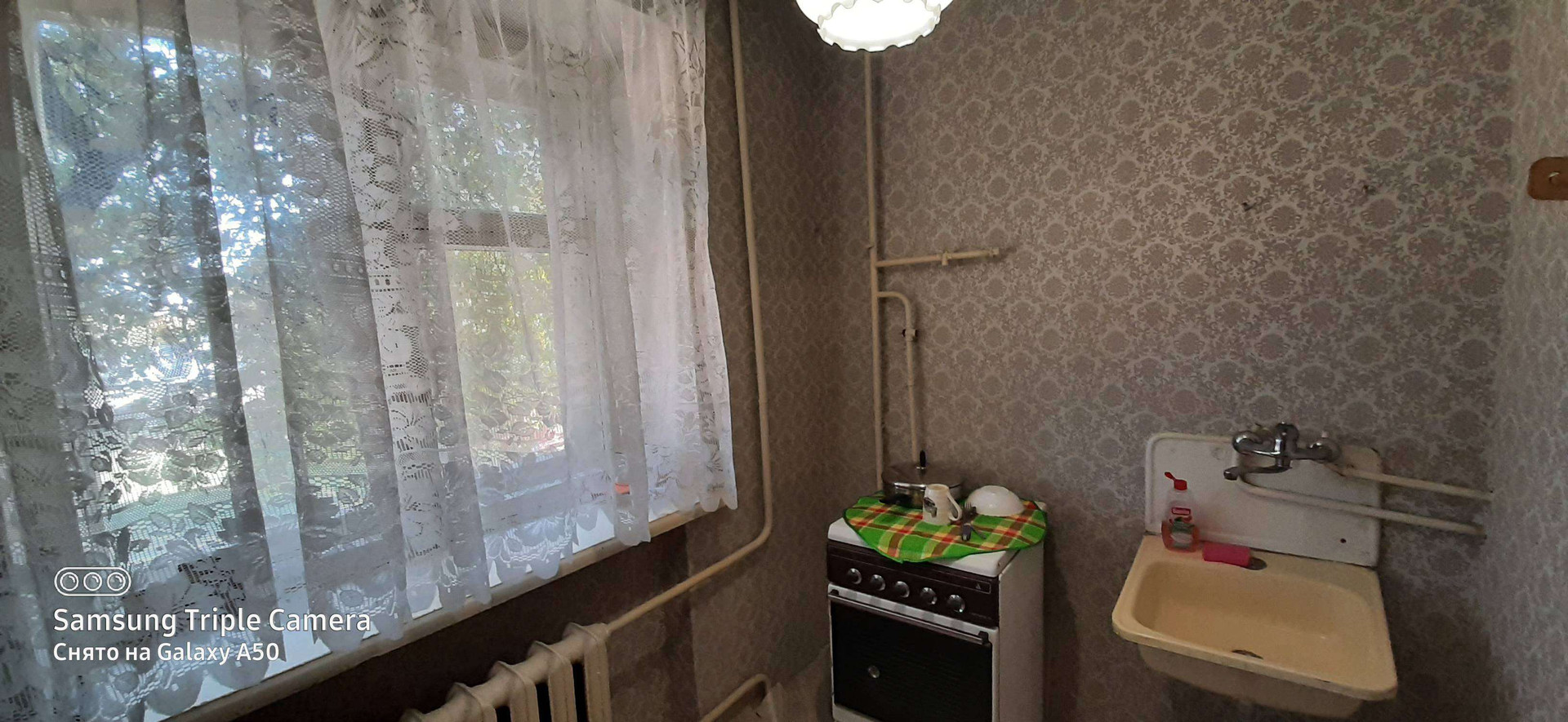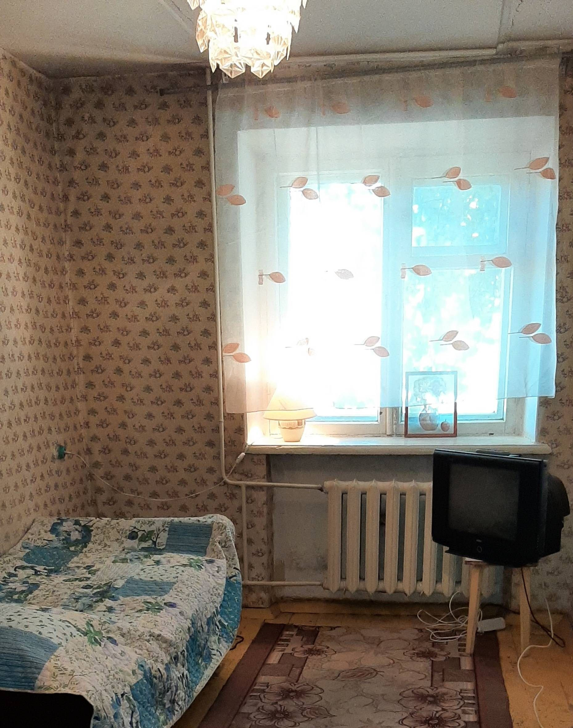 Квартира имеет жилую площадь 41.2 квадратных метра, а также кухню площадью 6.3 квадратных метров, где есть стол, газовая плита и раковина. Внутри квартира частично мебилирована, есть кровать, два шифанера, телевизор, стол, стулья и табуреты. Санузел раздельный, что добавляет удобства в повседневное использование.