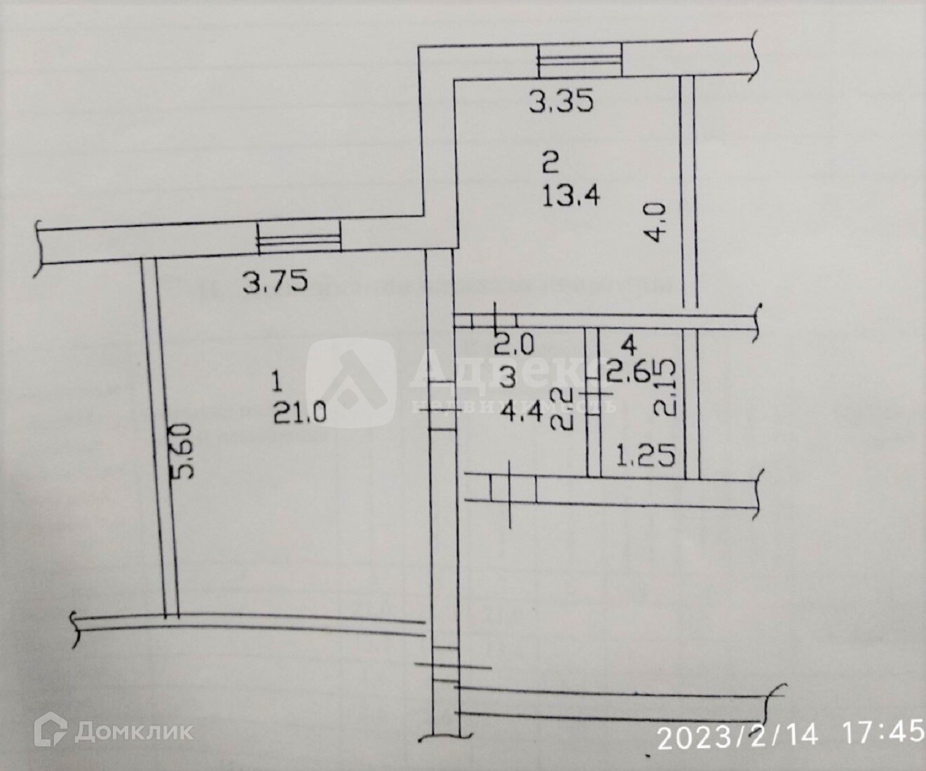 Общая площадь 41.4 м2