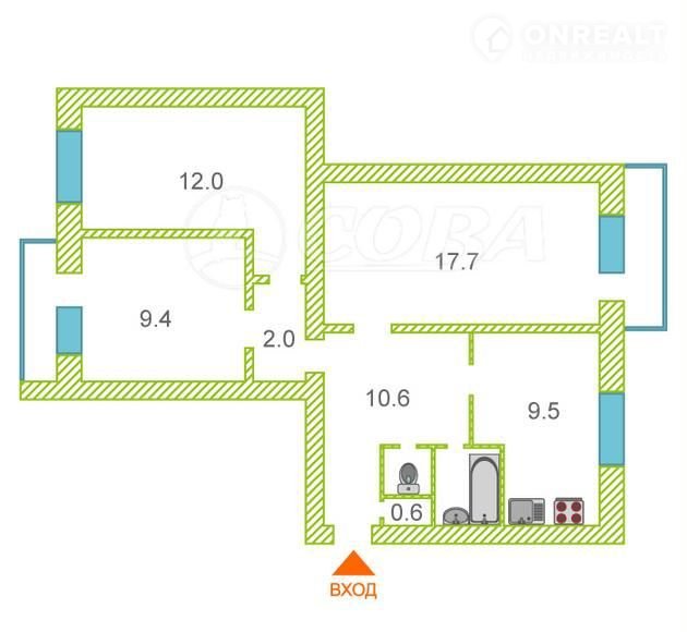 Площадь кухни 9.5 м2