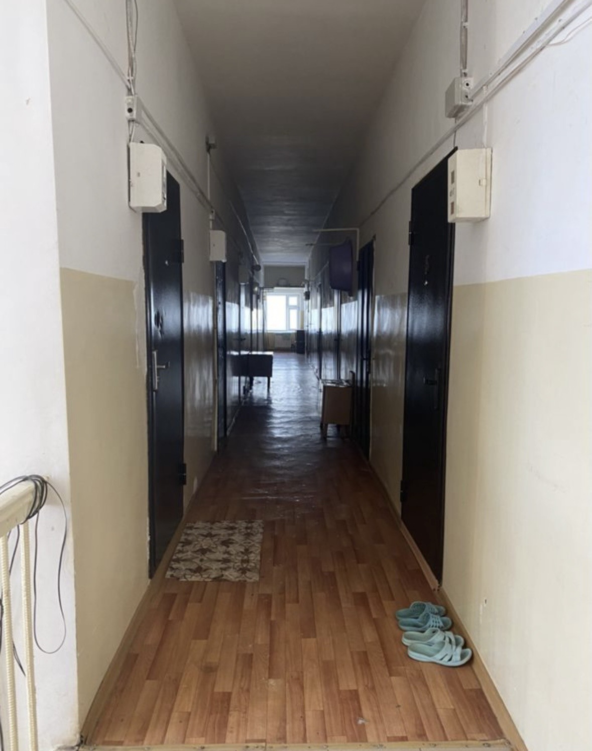 Три комнаты в бывшем общежитии со всеми удобствами (туалет, душ) с отдельными входами с коридора для служебного жилья или арендного бизнеса. Продажа возможна только всех комнат вместе, т.к. документ один на 3.