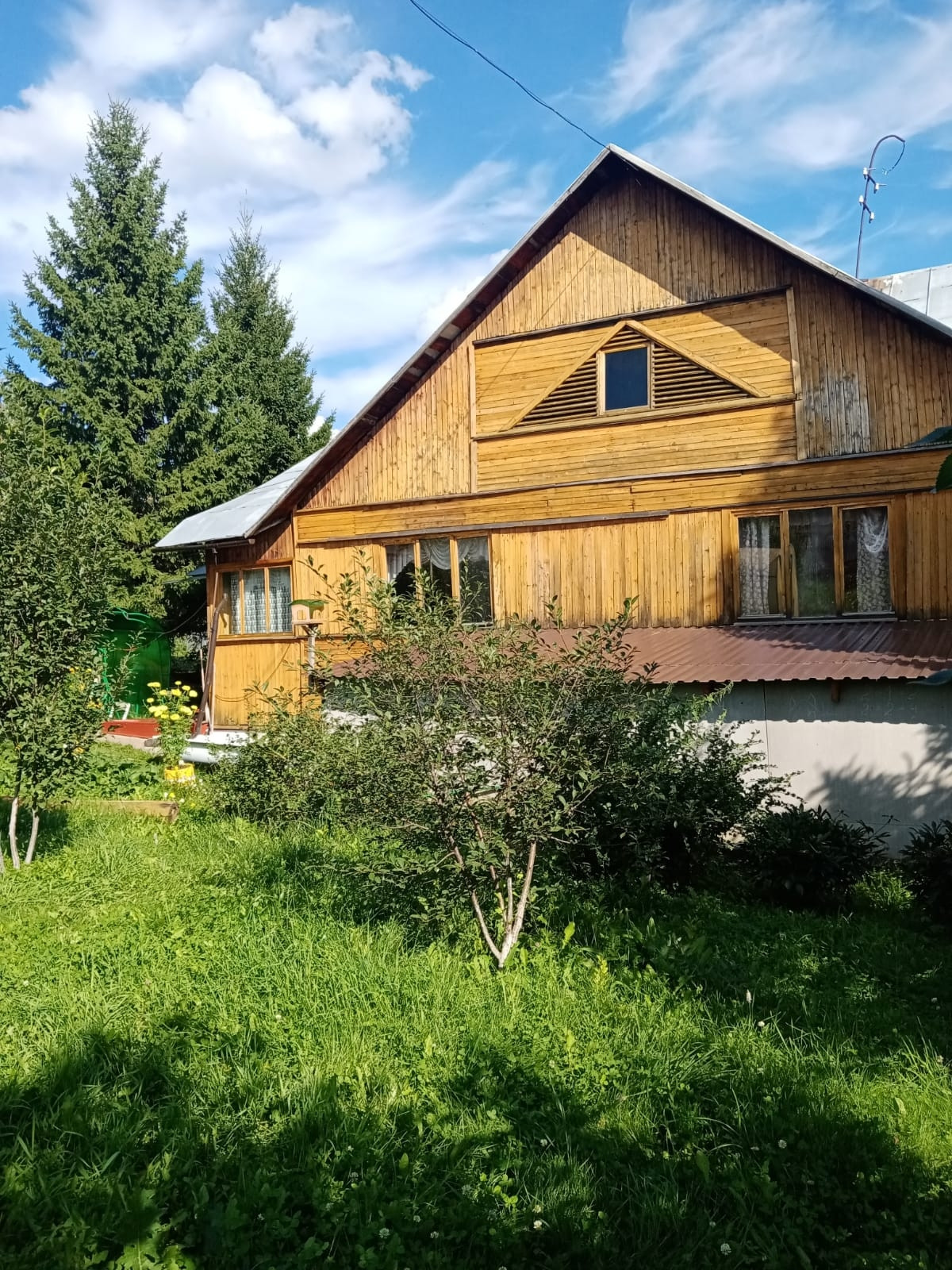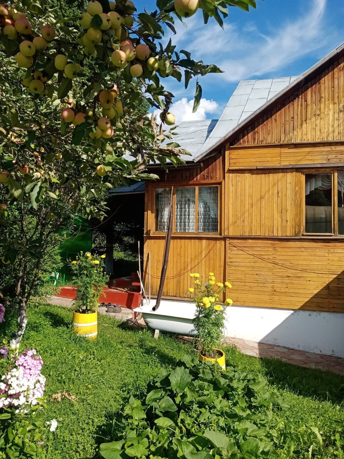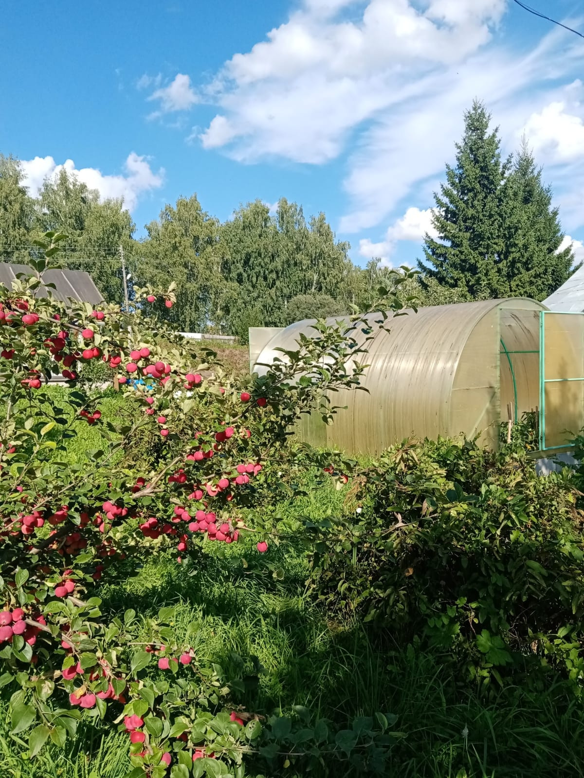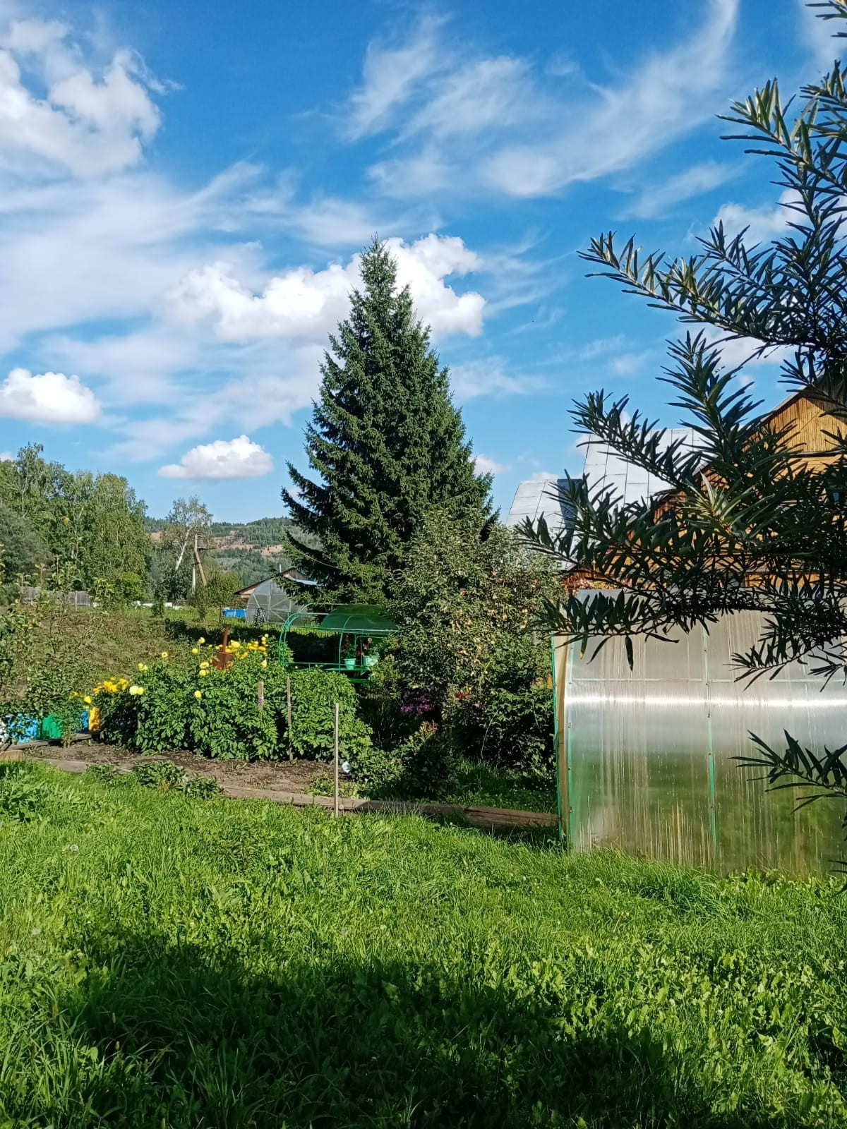 Не участке плодовые деревья; яблони, сливы, облепиха, жимолость, малина, малина чёрная, ирга, две теплицы и т.д. Баня, хоз.двор, дровник, летний гараж.
