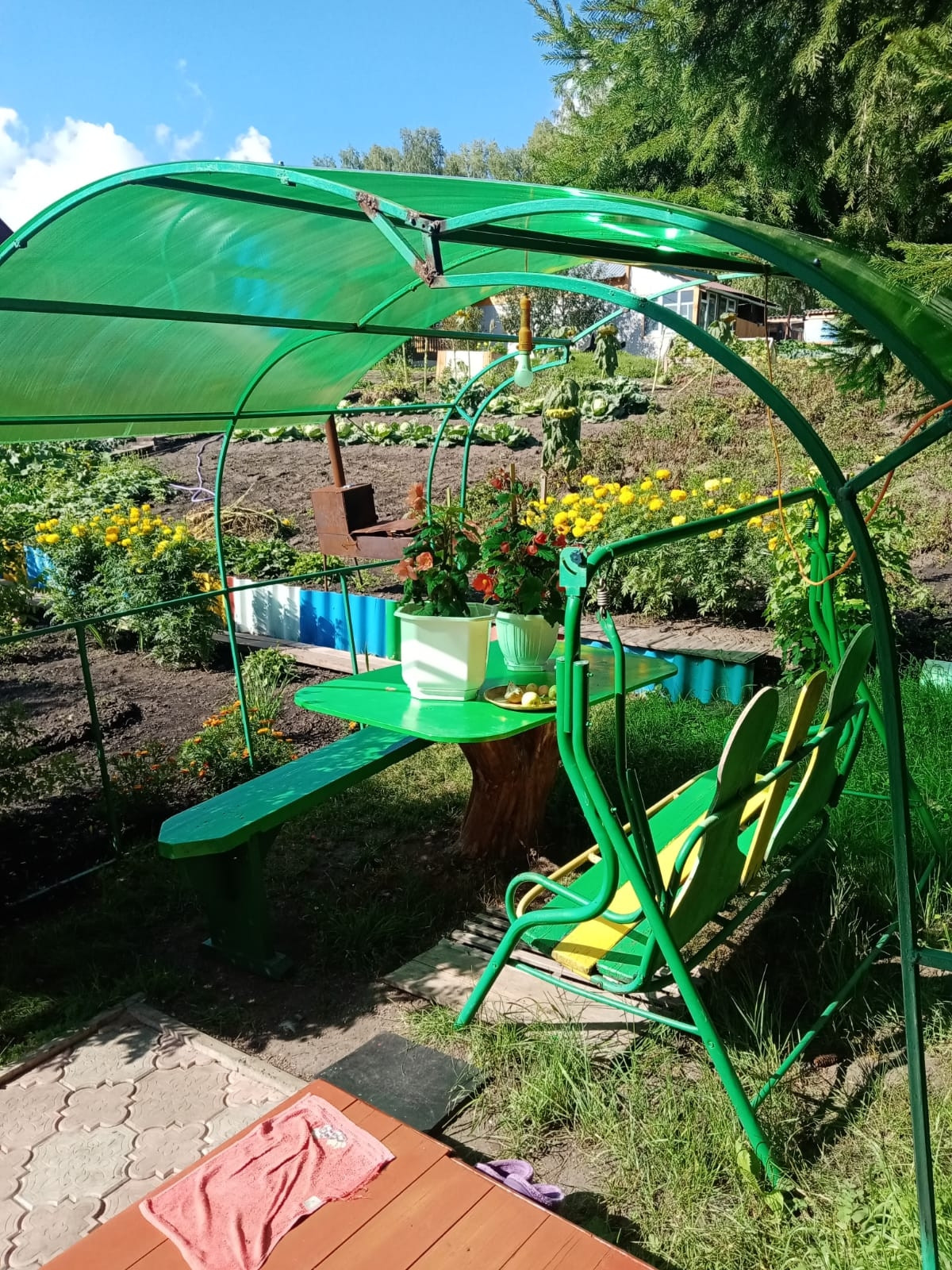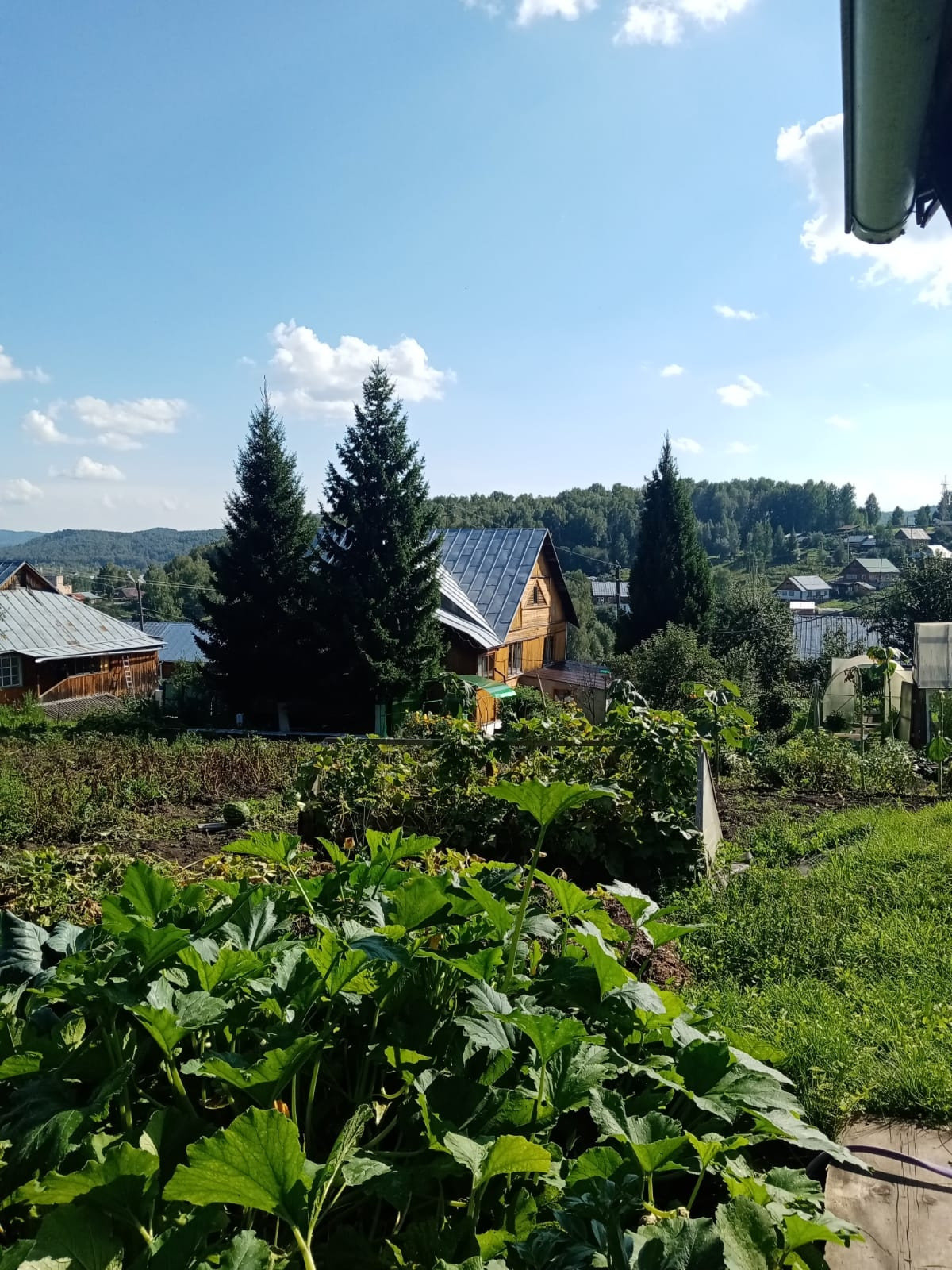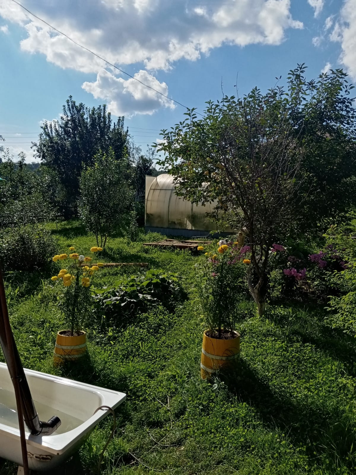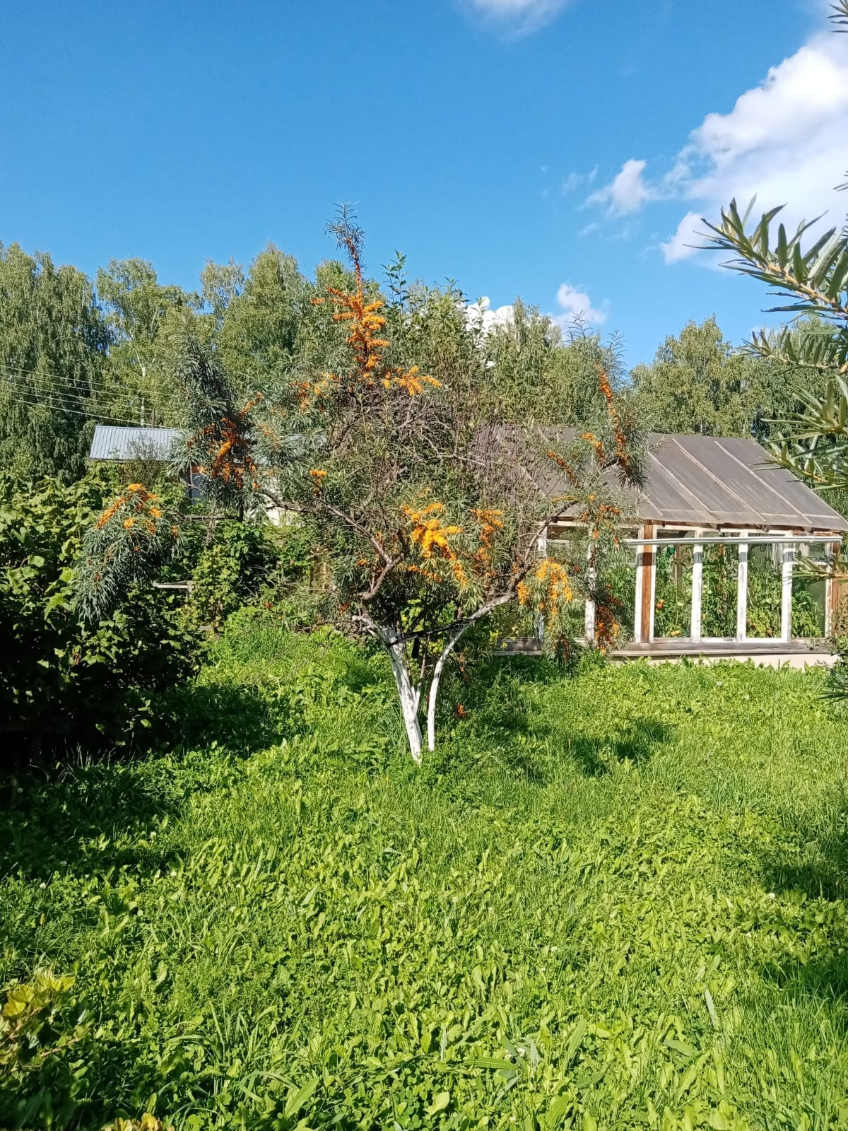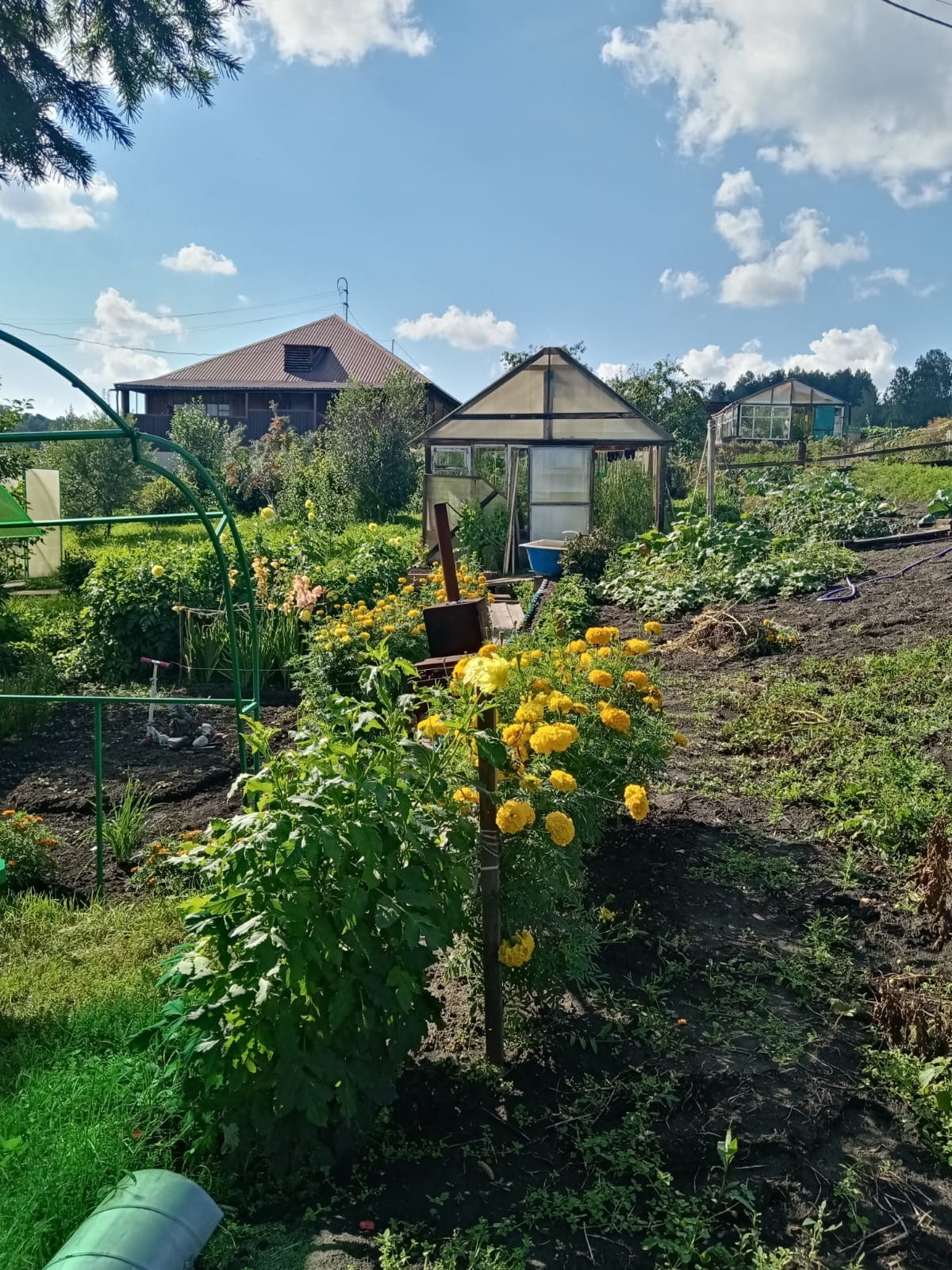 Не участке плодовые деревья; яблони, сливы, облепиха, жимолость, малина, малина чёрная, ирга, две теплицы и т.д. Баня, хоз.двор, дровник, летний гараж.