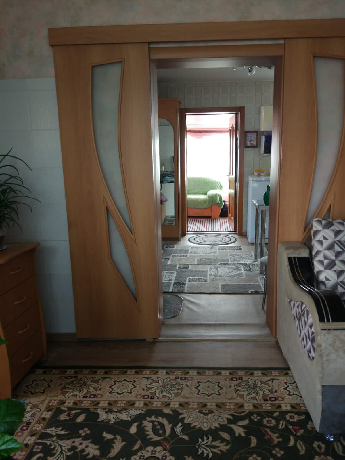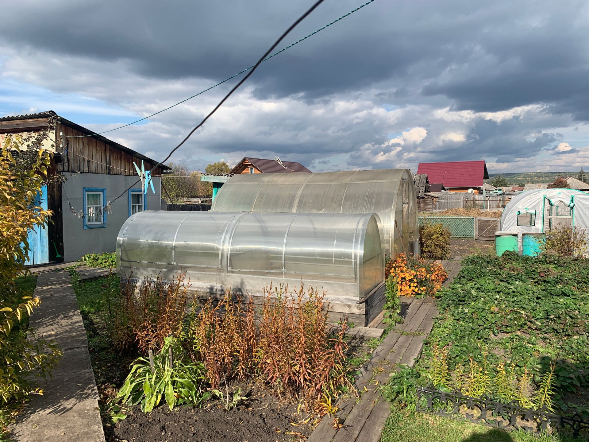 Продам квартиру на земле в двухквартирном доме в Б.Мурте, 3 комнаты, 47м2, хороший ремонт, печное и электроотопление по батареям, санузел (ванная и туалет), окна ПВХ, подполье, погреб, бойлер в ванной и на кухне, часть мебели остается, баня новая, гараж, три теплицы, земли 11 соток, цена 2600 000₽, возможен небольшой торг, один собственник.