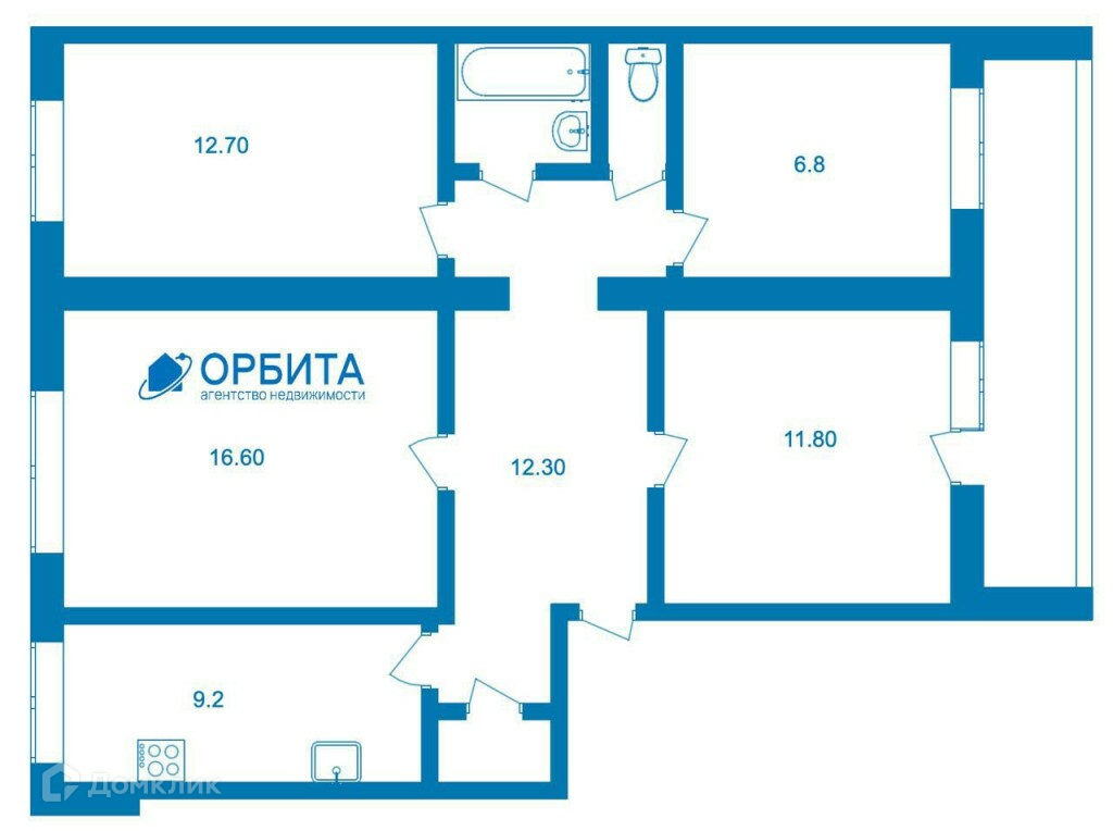 Общая площадь 76.7 м2