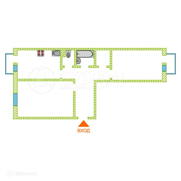 Общая площадь 55 м2