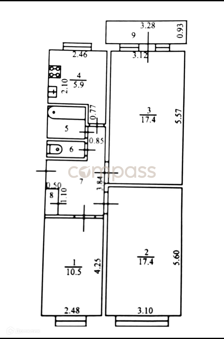 Общая площадь 61.5 м2