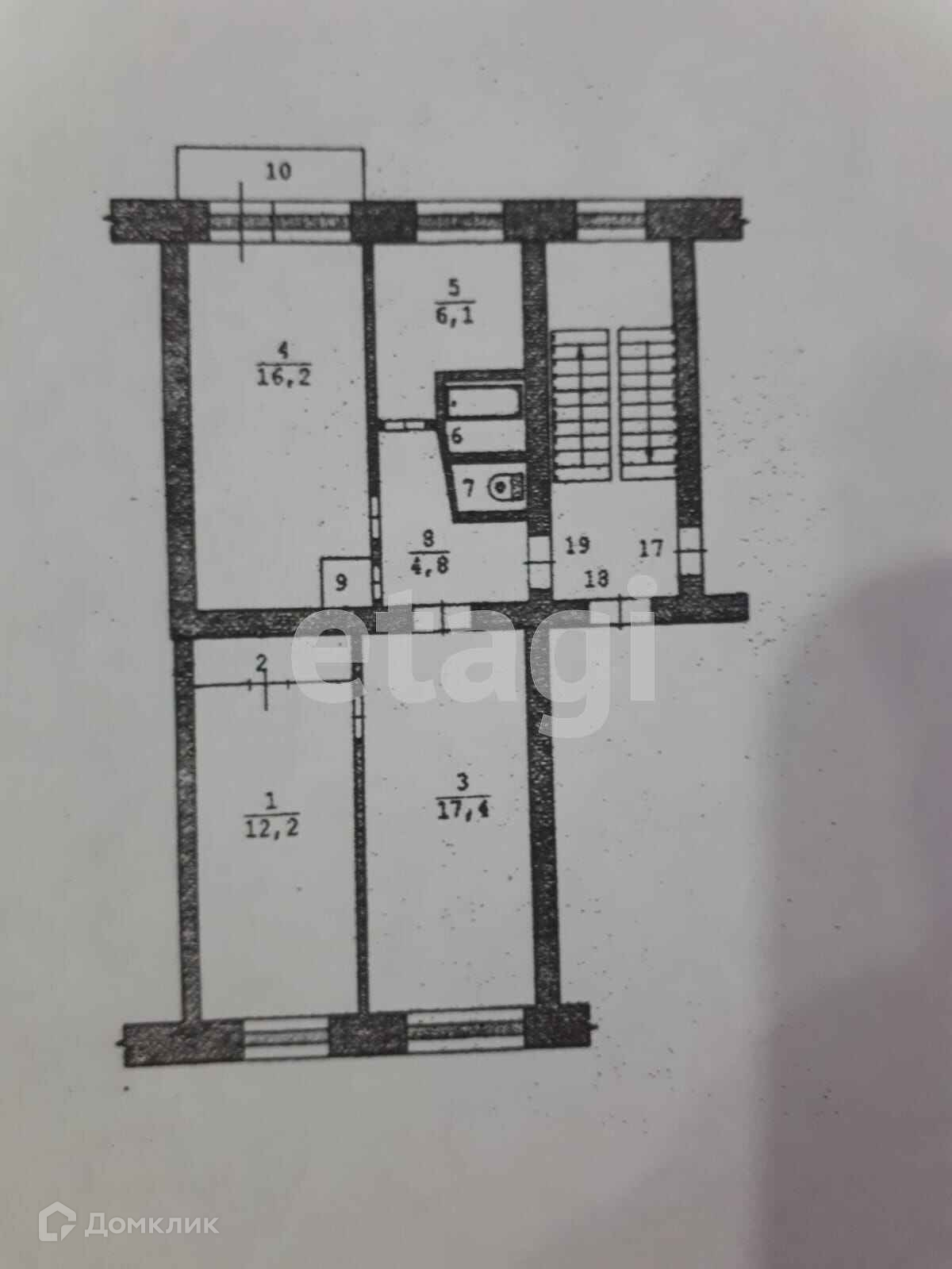 3-комнатная квартира, 61 м2, этаж 2 / 5, на продажу в посёлке городского типа Буланаш, Театральная улица, 19