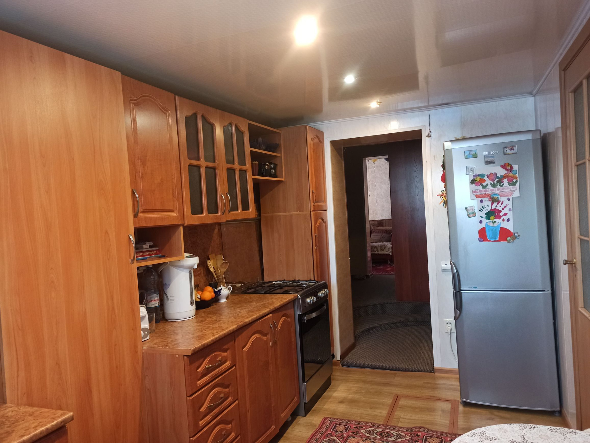 Продаётся благоустроенный дом, на сухом месте, газ, вода. Рядом 1 школа, 7 сад, магазины, асфальтированная дорога, большая придомовая территория. Имеется гараж, хоз. постройка, сухой огород с плодово ягодными насаждениями. Все вопросы по телефону.  Торг уместен.