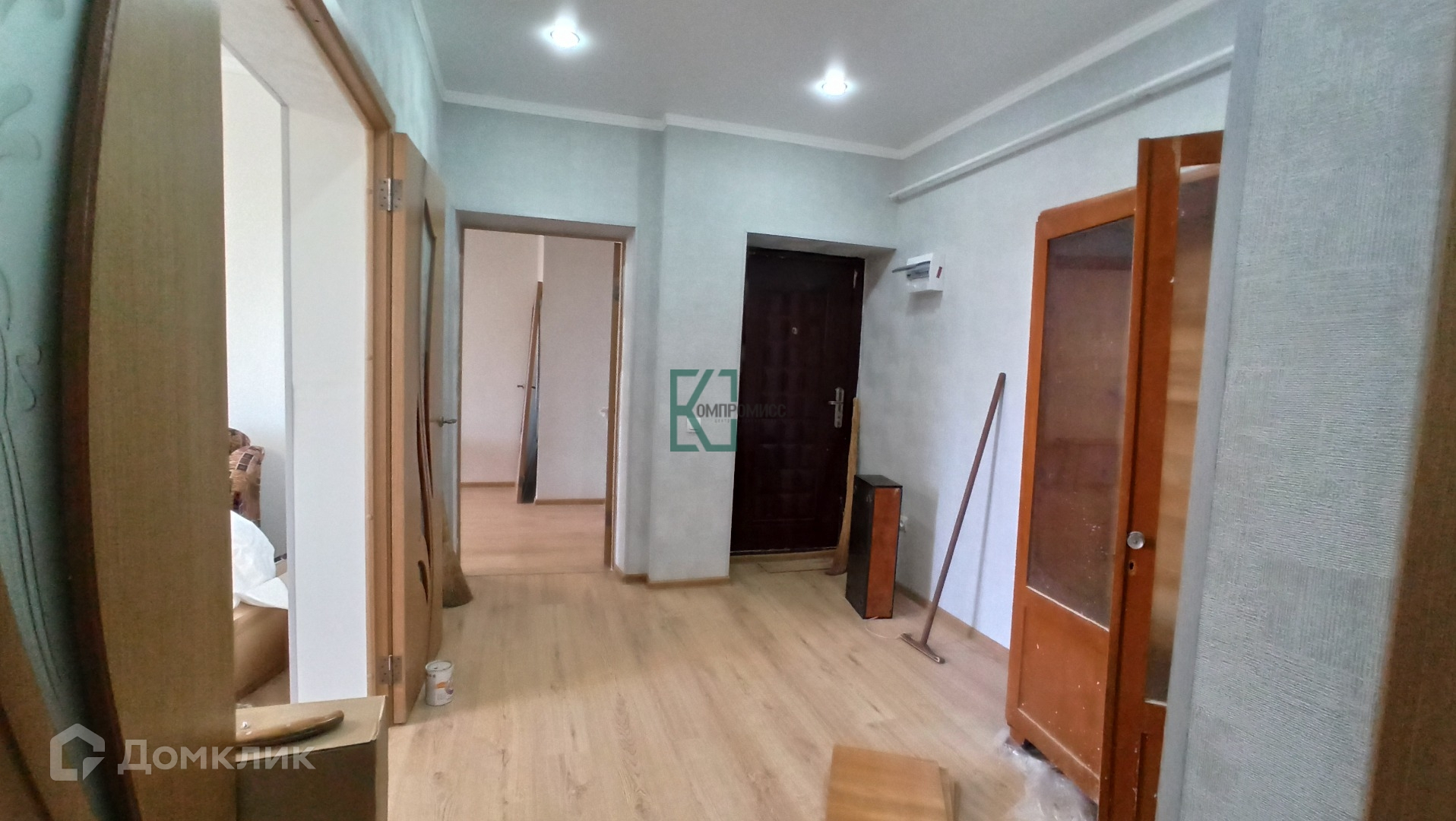 В квартире свежий косметический ремонт. Ванная комната обложена плиткой. В комнатах на полу ламинат, обои на стенах, натяжные потолки.