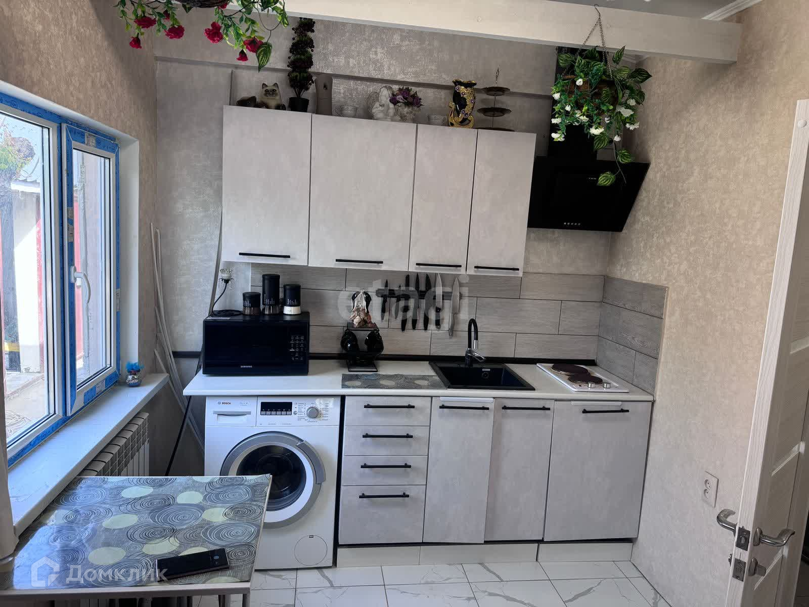 В доме проведено электрическое отопление. Проведено электричество, центральное водоснабжение. Канализация – центральная. Газа пока нет, но уже подана заявка на подключение. В доме две комнаты, большая кухня и санузел с душевой кабиной. Новому собственнику остается вся техника и мебель. Санузел есть как в доме, так и на улице. В доме сделан современный ремонт. Фасад дома утеплен пенопластом, требует вложений на облицовку. Дом построен из кирпича. Год постройки 2010. На придомовой территории построен гостевой дом на одну комнату, с современным ремонтом. На территории участка построен хозблок. Дом оформлен, как жилой. Возможна прописка.