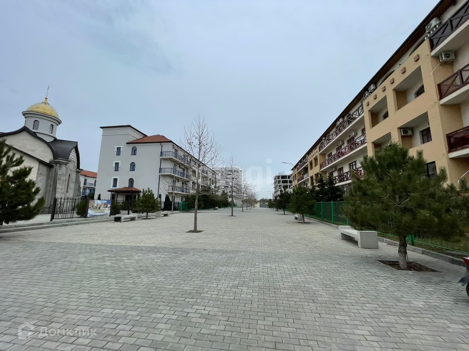 Рядом с комплексом аквапарк. Во дворе бассейн.